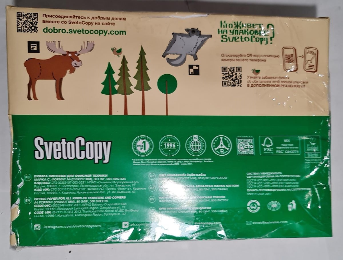 Бумага А4 для оргтехники SvetoCopy / Бумага Свето копи 500 листов . Уцененный товар