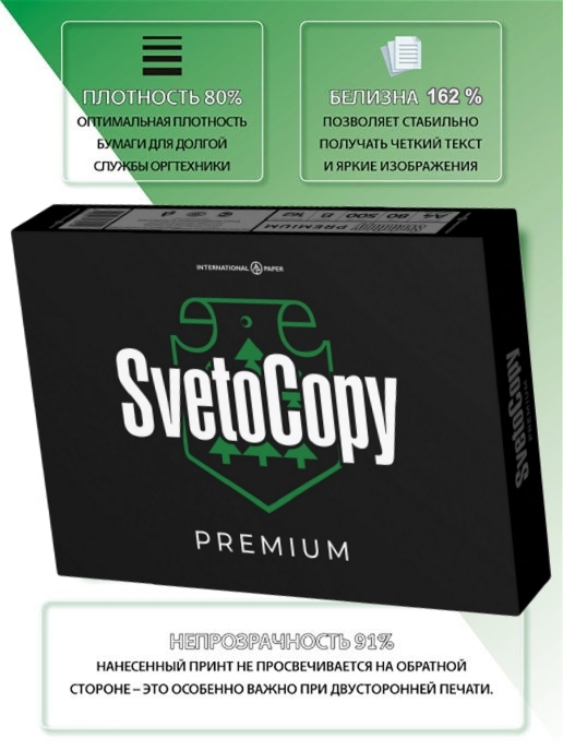Бумага офисная SVETOCOPY CLASSIC, А4, 80 г/м2, 500 л., марка С, International Paper, белизна 146%