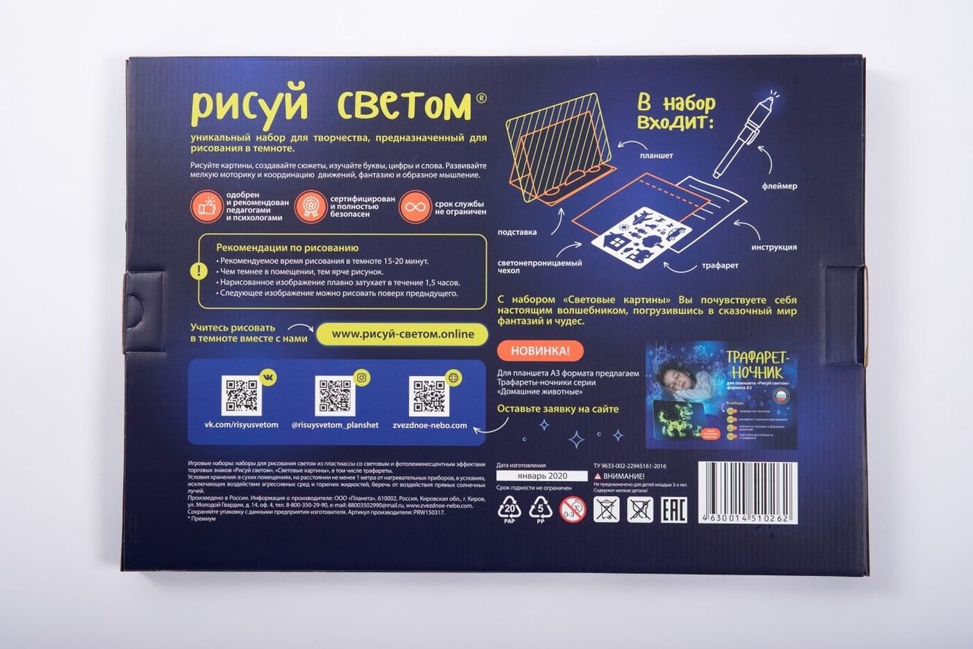 Рисуй светом Набор для рисования в темноте с планшетом формат А4 Световые картины