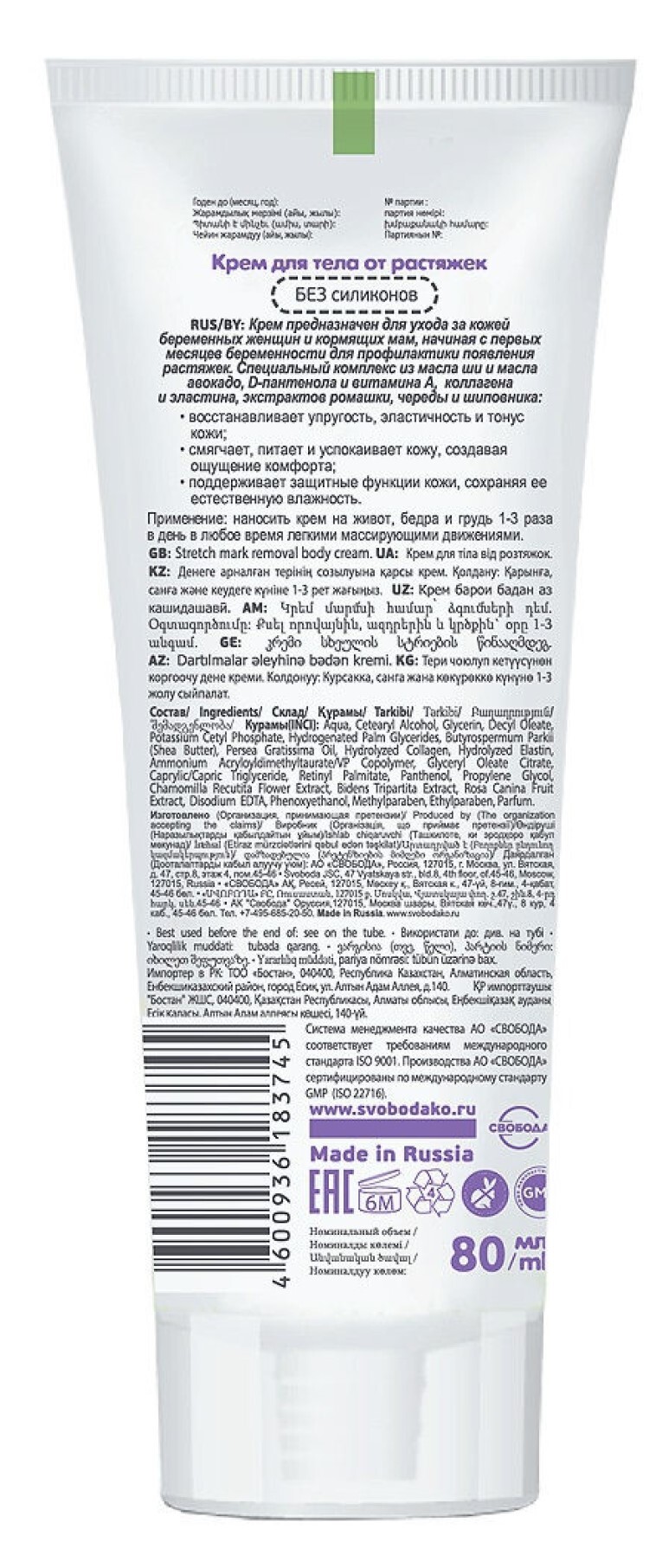 СВОБОДА Крем для тела от растяжек Mother care для беременных и кормящих мам, 80г