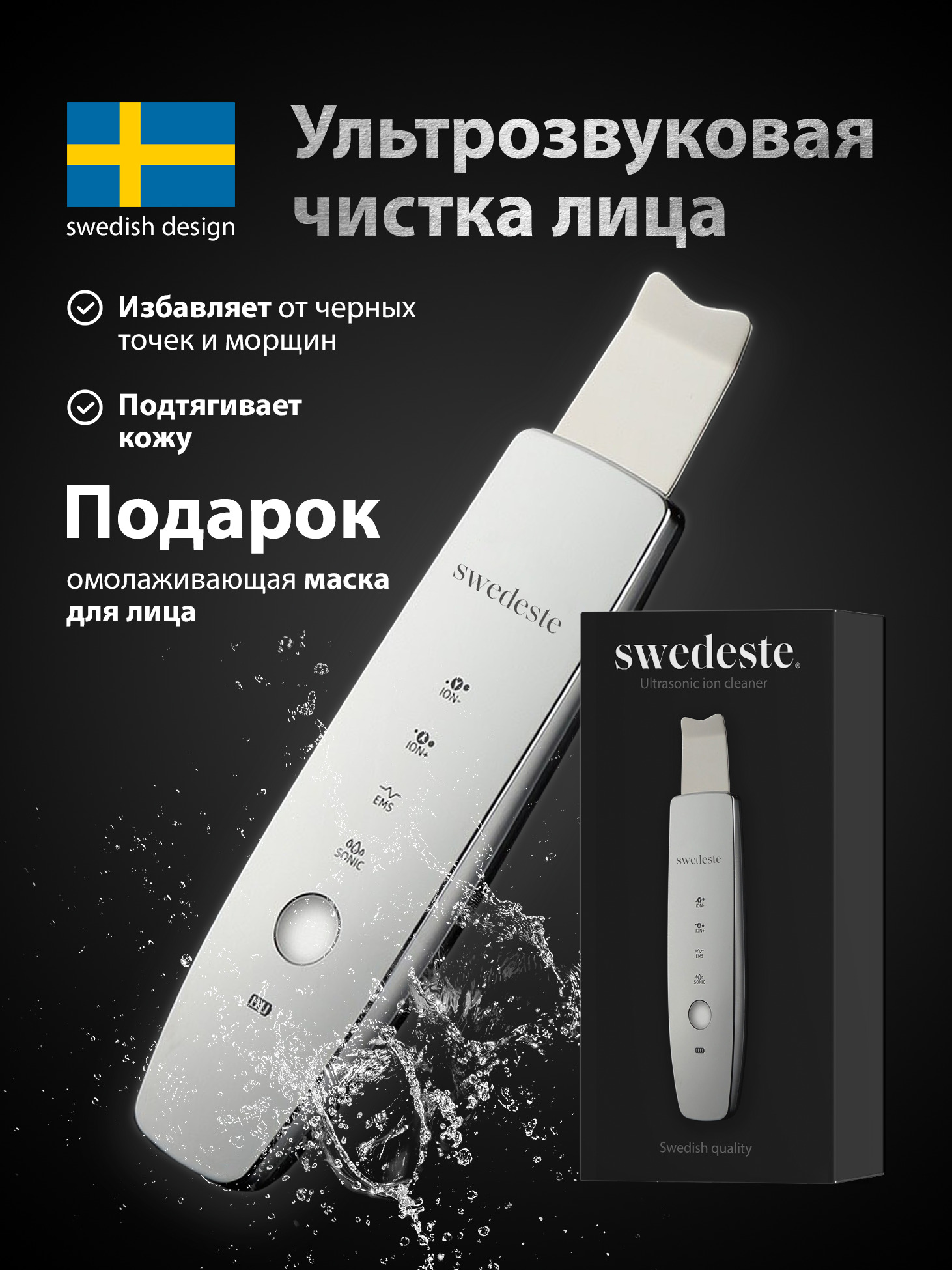 SWEDESTE Косметологический инструмент Ultrasonic Ion Cleaner