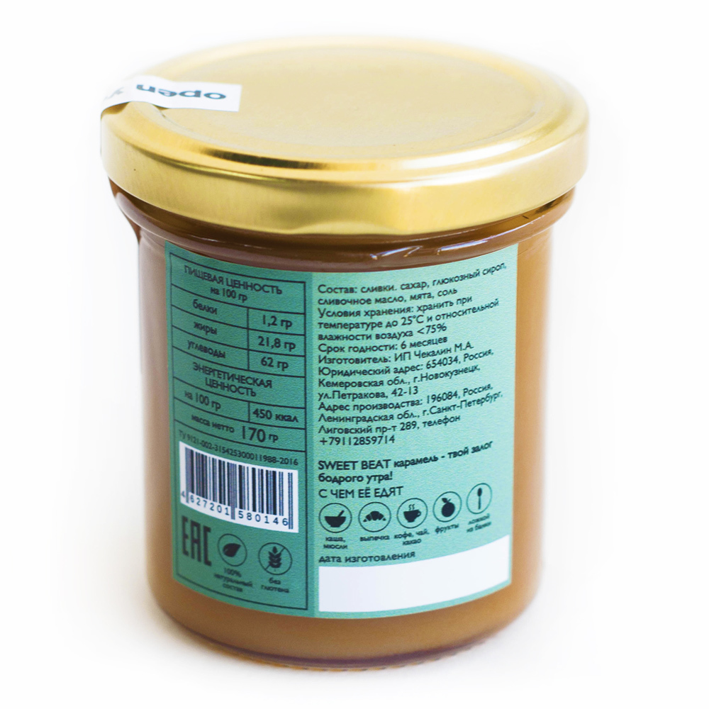 Натуральная мягкая мятная солёная карамель Sweet Beat 170 гр. с мятой
