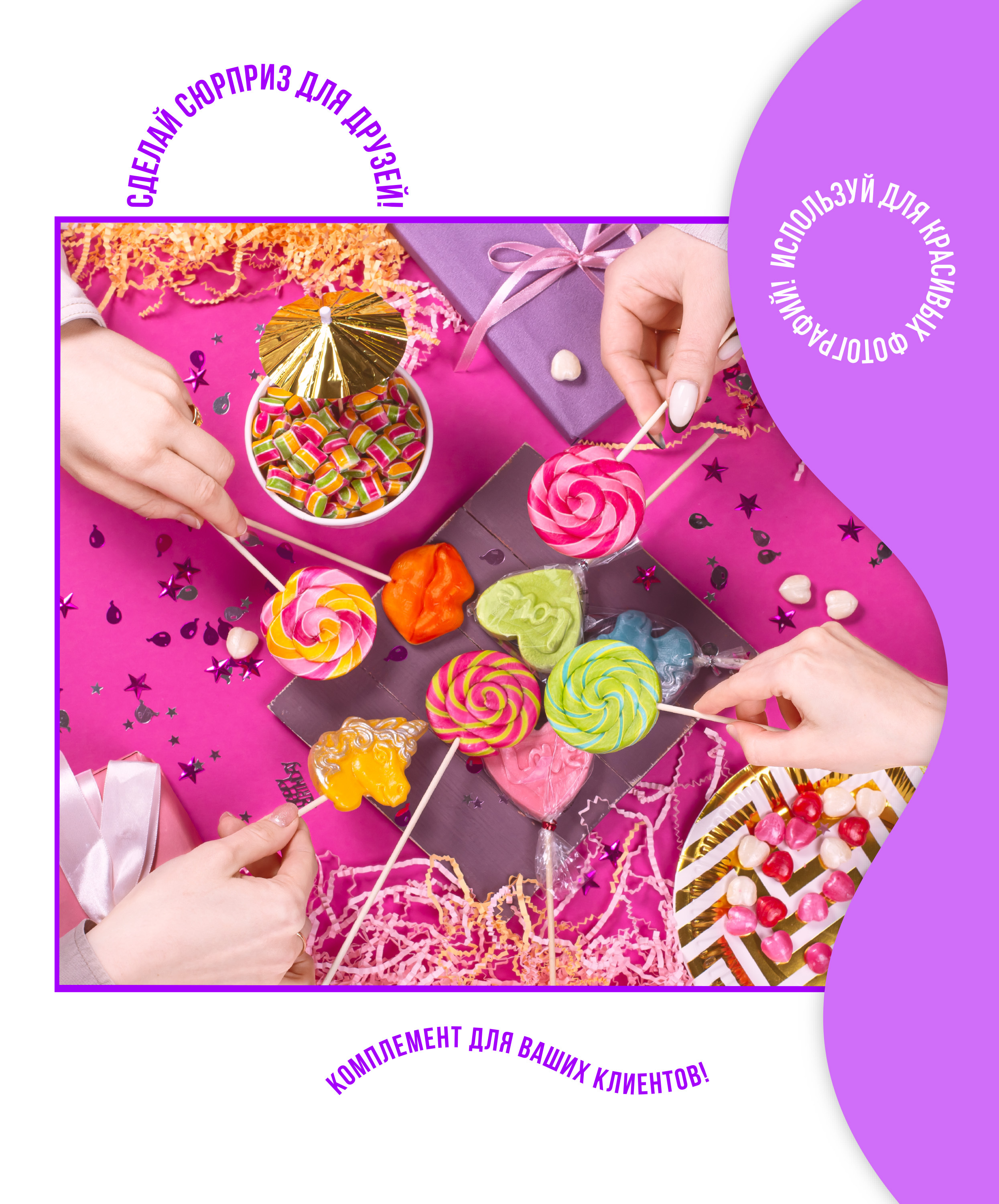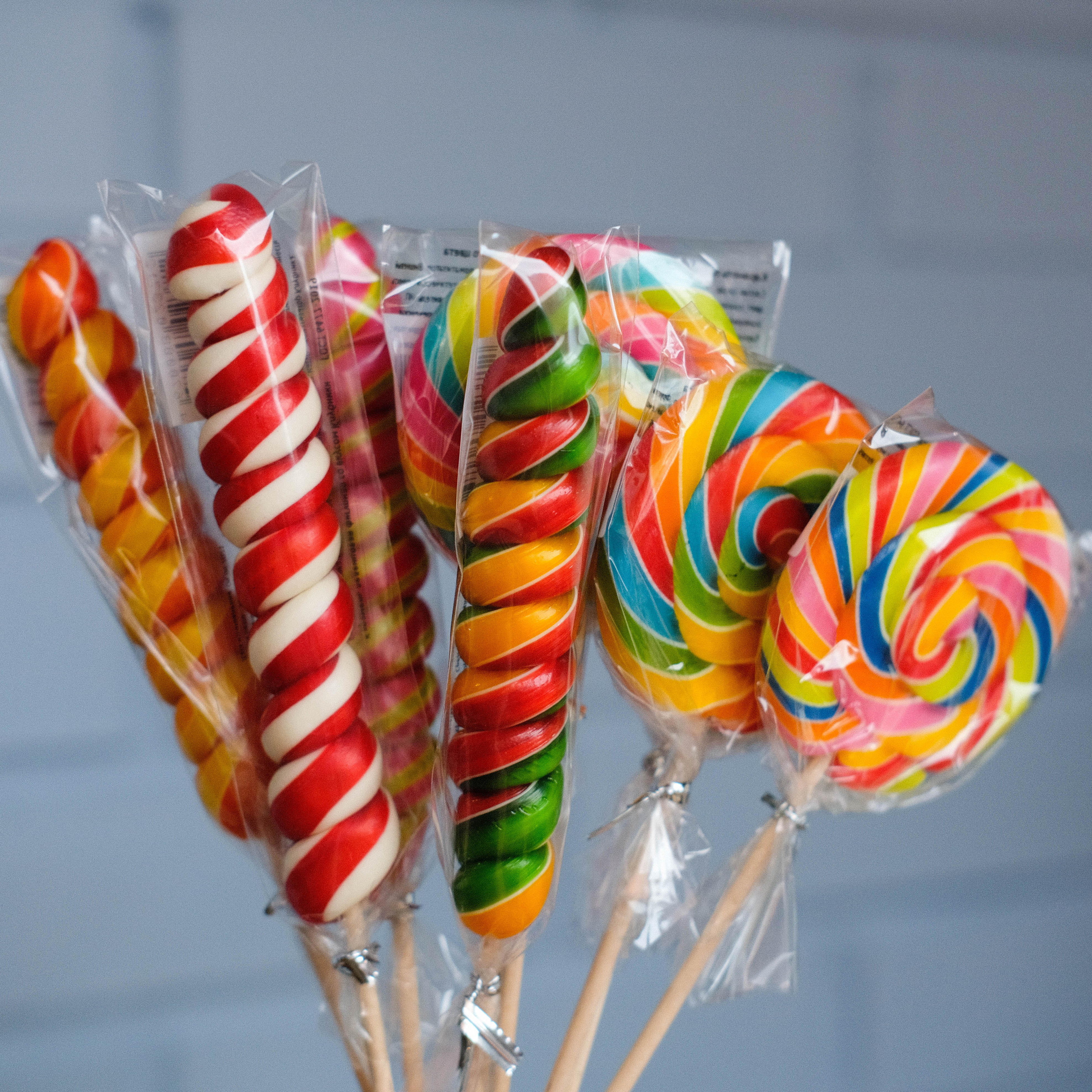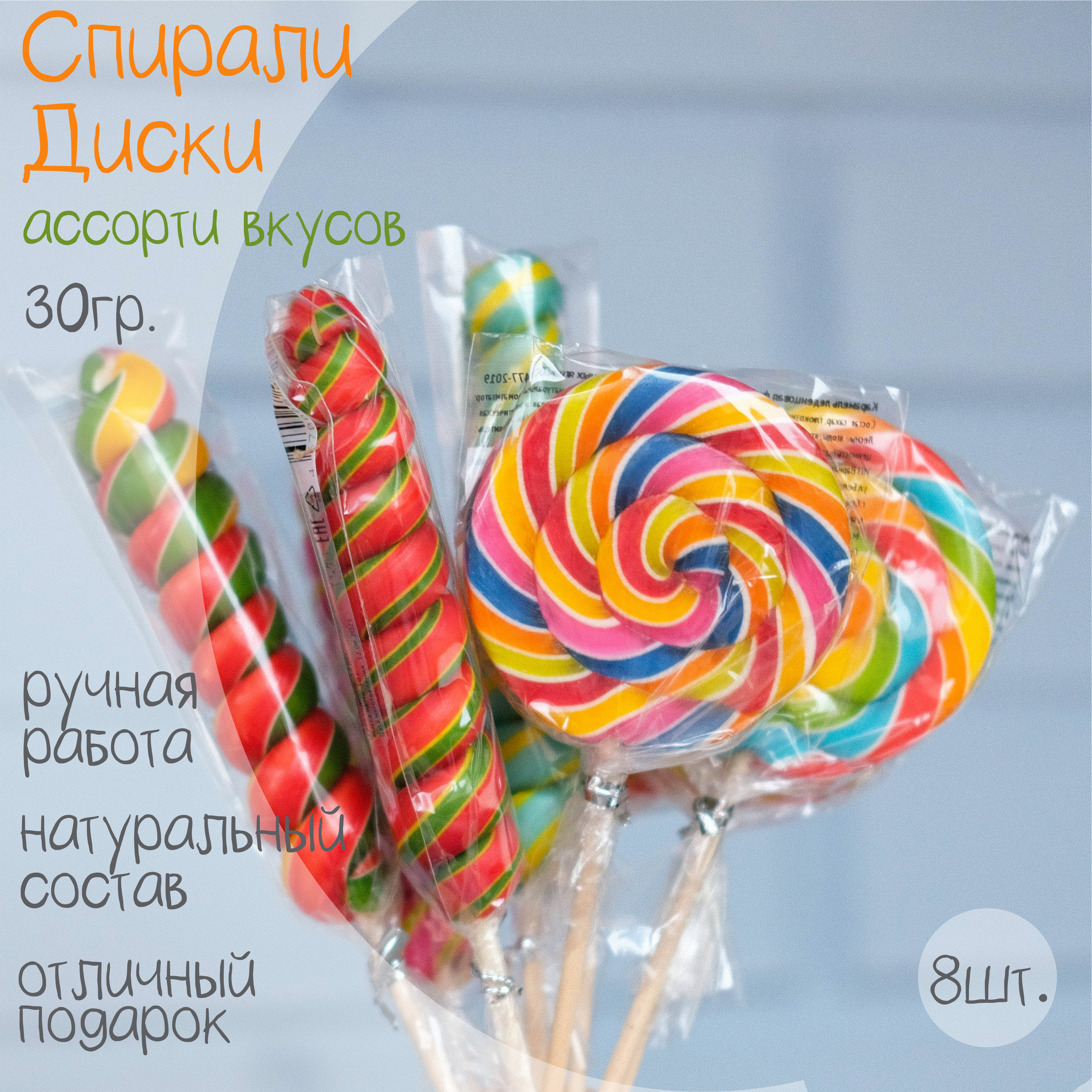 Ассорти Карамель леденец на палочке Спирали и Диски 8шт. по 30г.