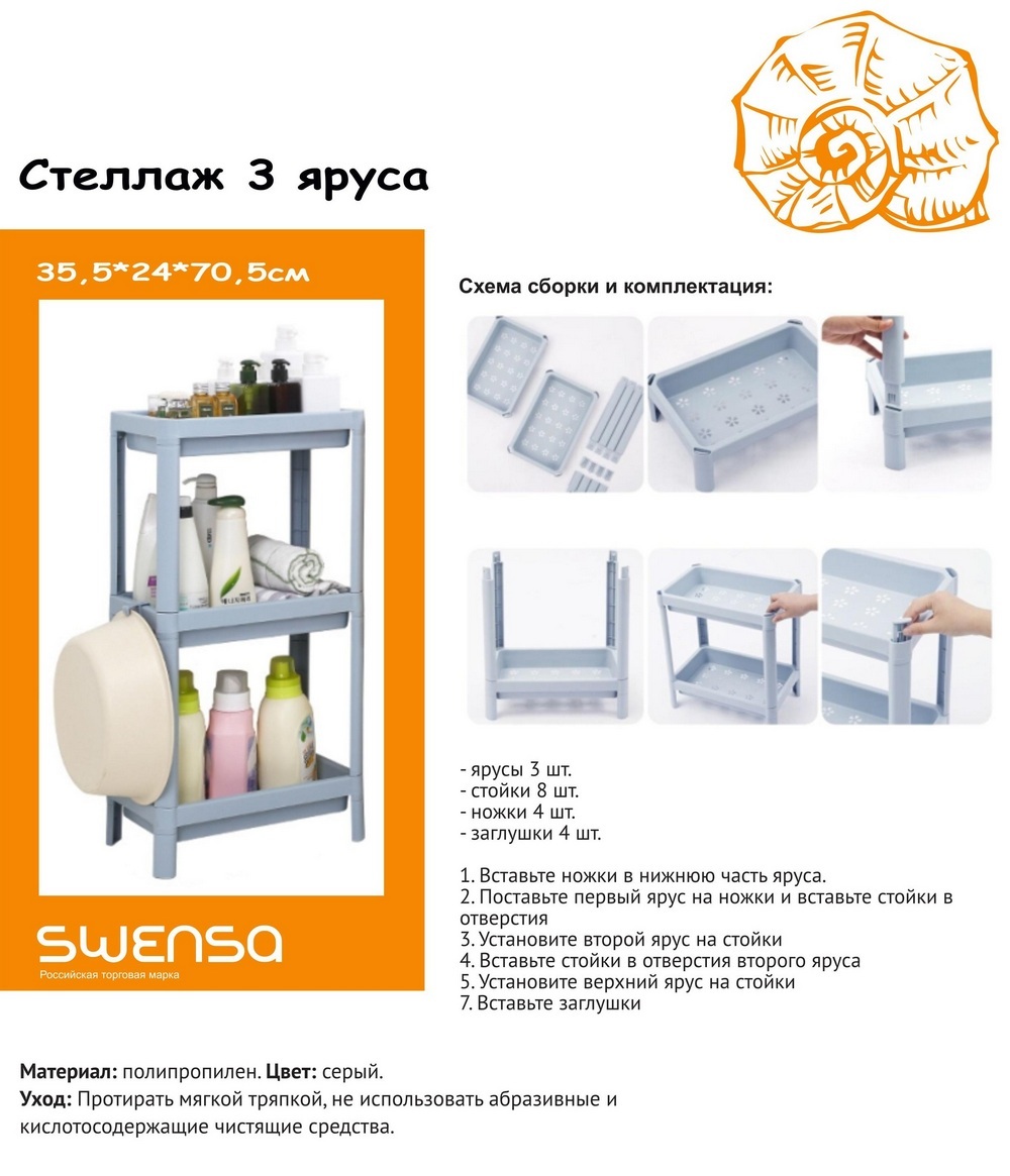 Стеллаж SWFL-1081, 35.5х24х70.5 см, Swensa