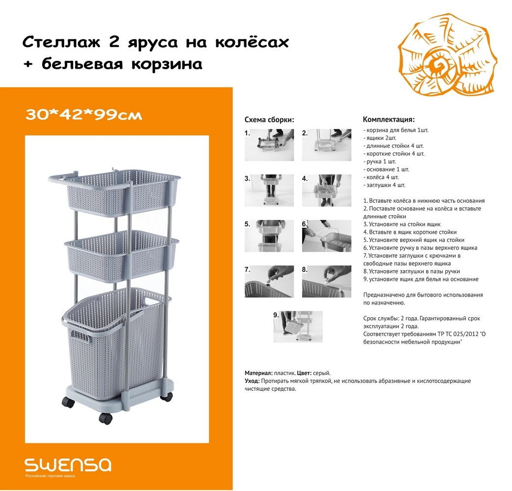 Этажерка SWFL, 3 секц., 30х42х99 см