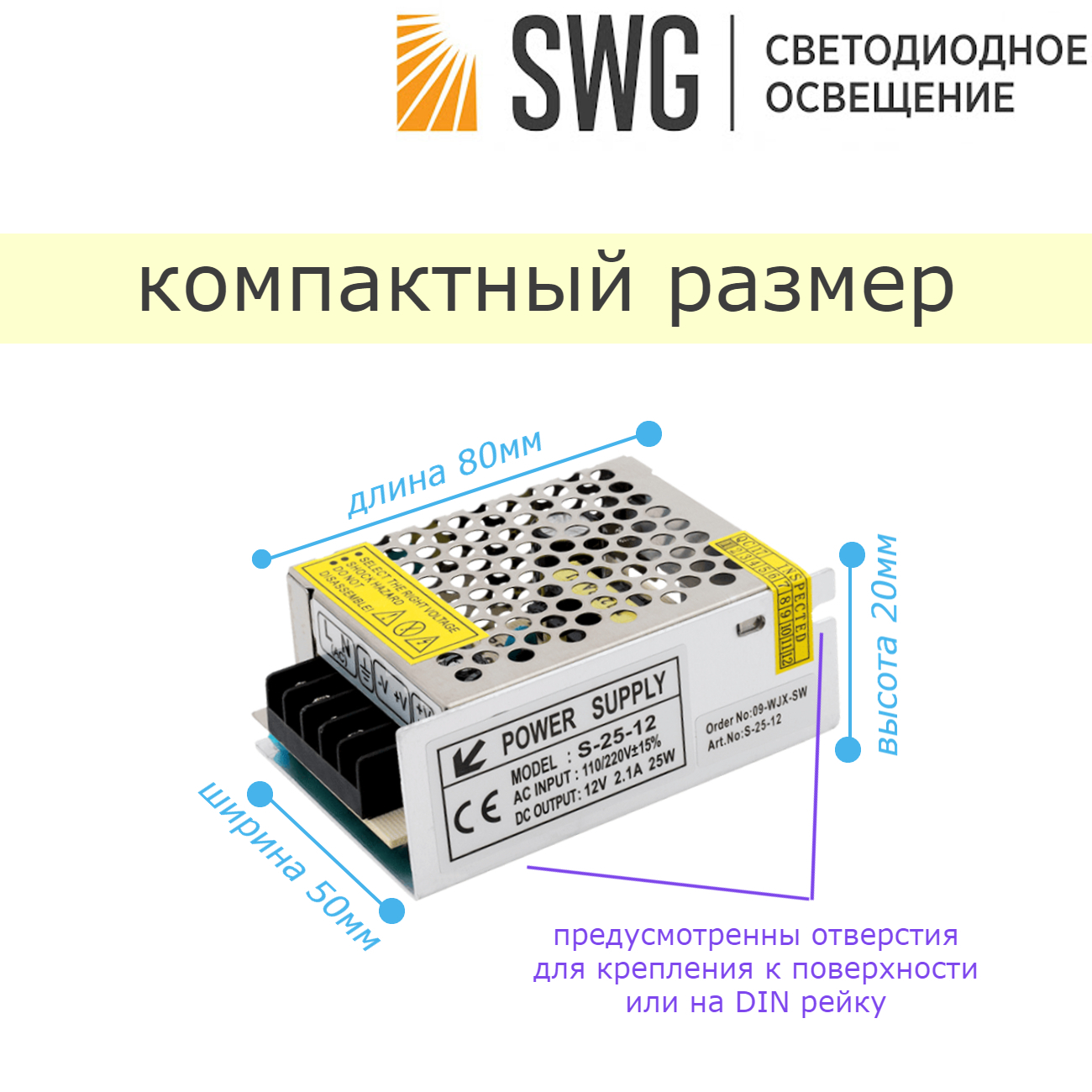Блок питания для светодиодной ленты, Драйвер для светодиодной ленты SWG, 12В, 100 Вт, IP20