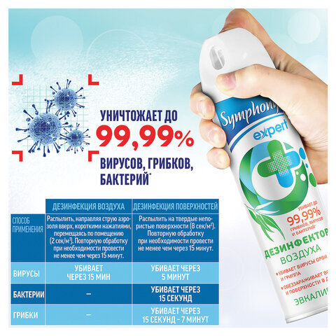 Средство антивирусное 250 мл, SYMPHONY EXPERT Эвкалипт, аэрозоль, для ПОВЕРХНОСТЕЙ и воздуха, 37054, 4600104037054S