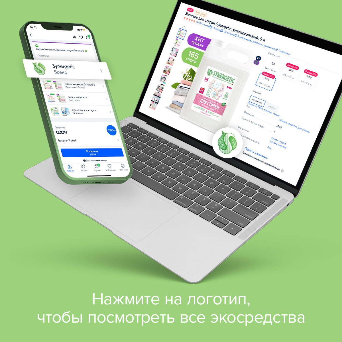 Гель для стирки 2в1 SYNERGETIC c пятновыводителем, концентрат, гипоаллергенный, 5 л, 165 стирок