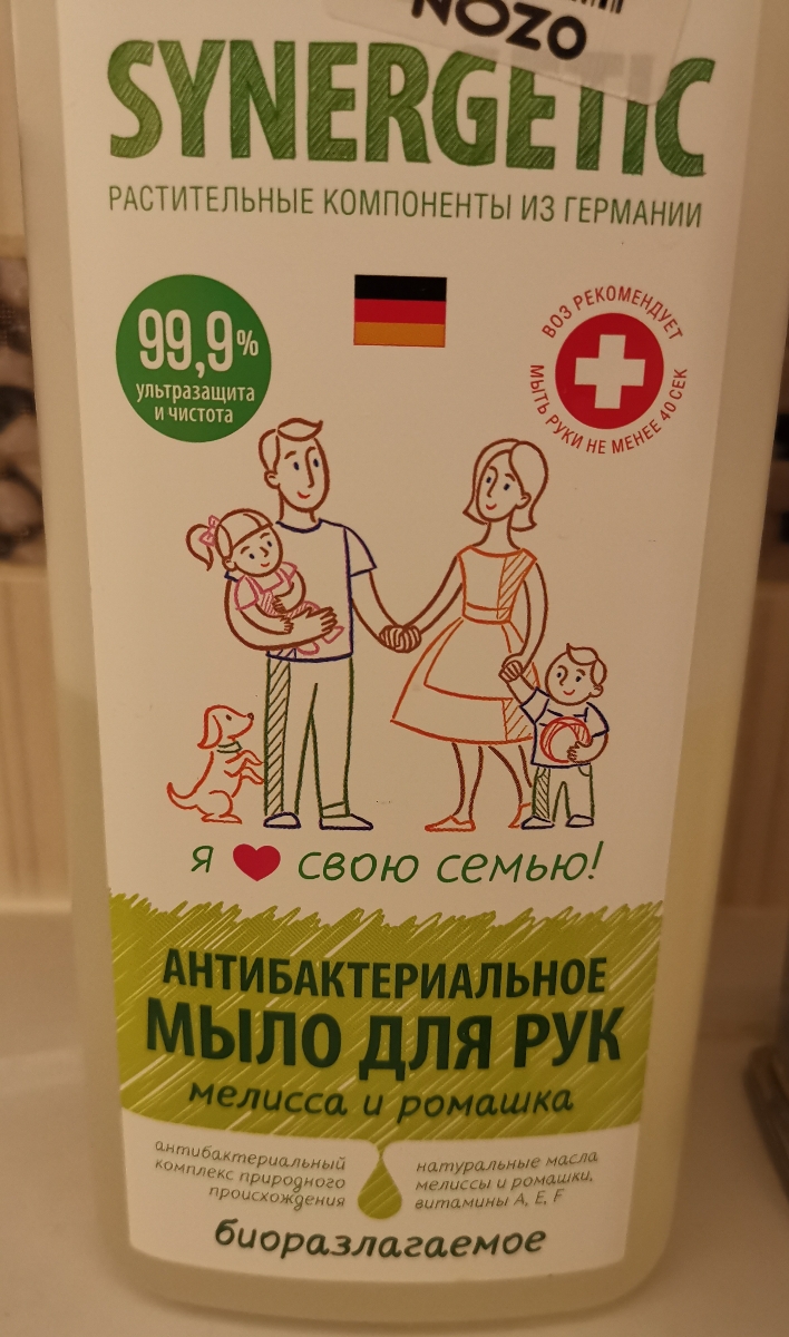 Жидкое мыло для рук SYNERGETIC Мелисса и ромашка, антибактериальное, с эффектом увлажнения, 0,5 л