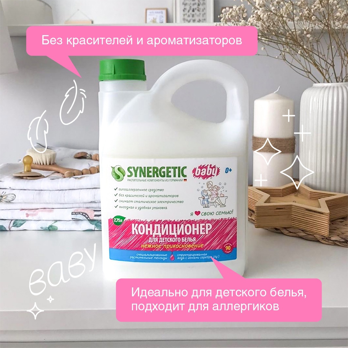 Кондиционер для стирки детского белья SYNERGETIC гипоаллергенный, без запаха, 2,75л, 90 стирок