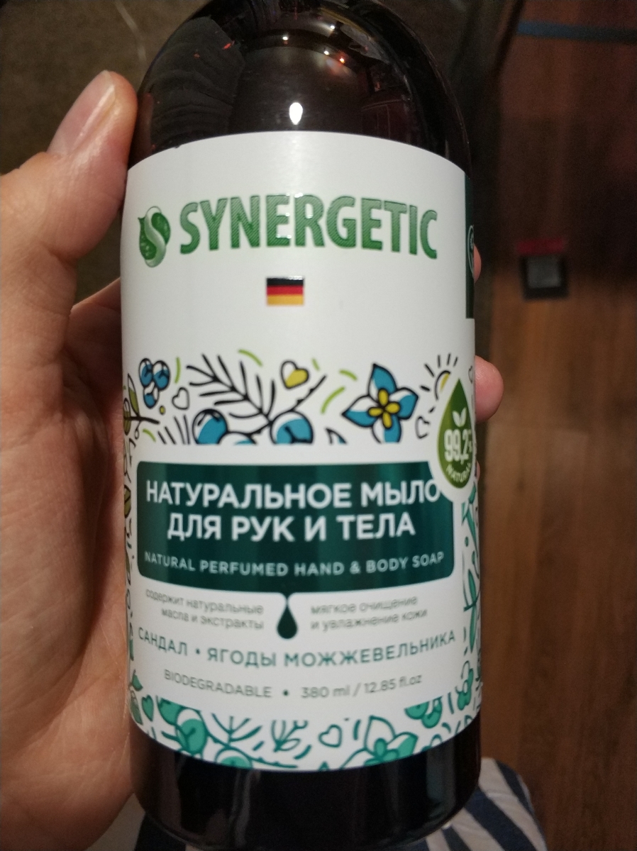 Мыло косметическое SYNERGETIC Сандал и ягоды можжевельника, 380 мл