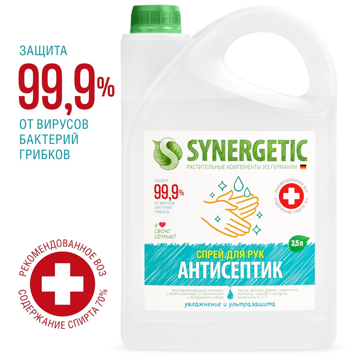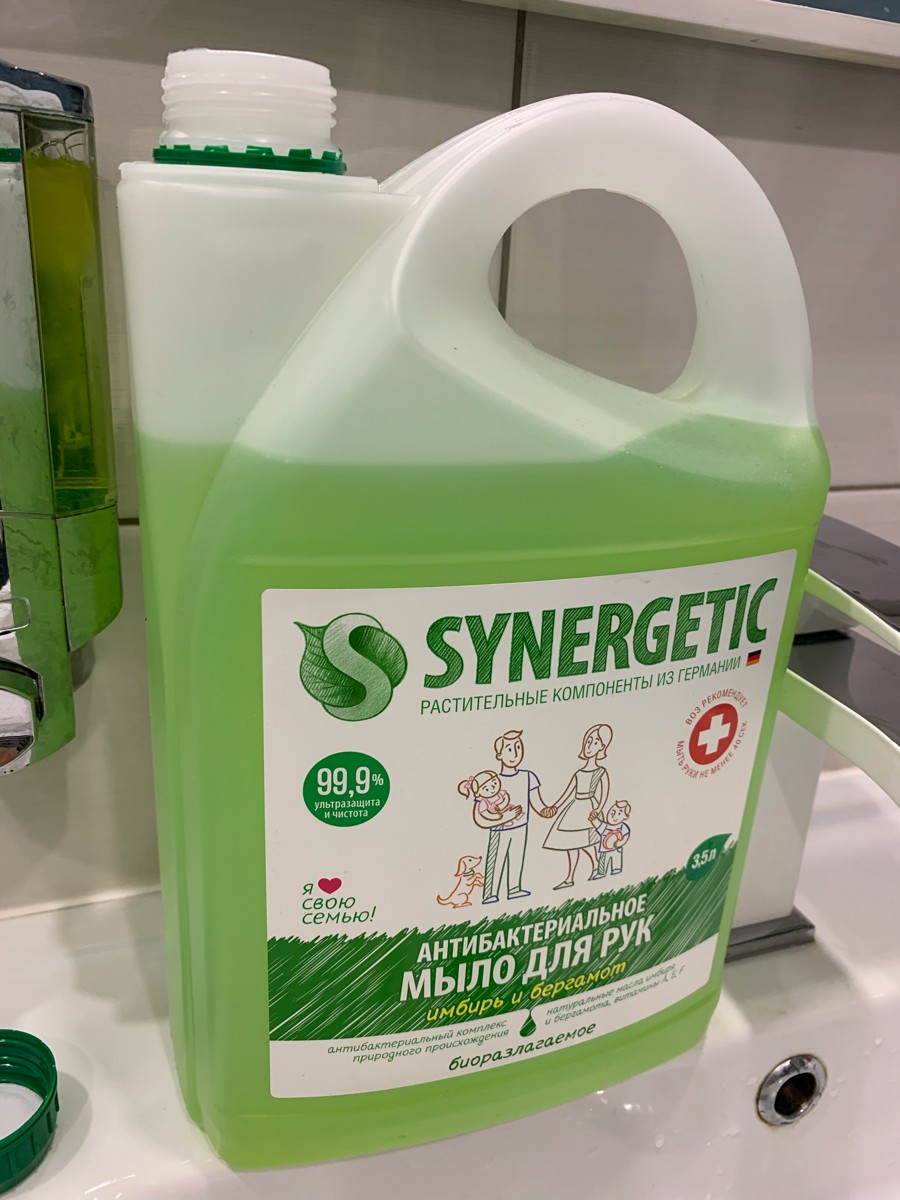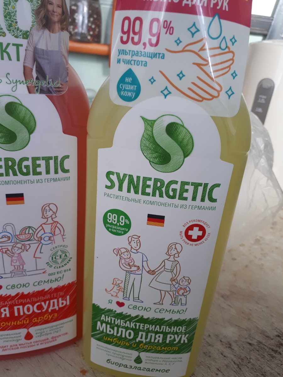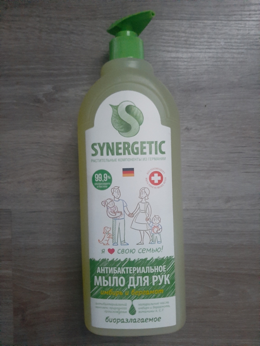 Жидкое мыло для рук SYNERGETIC Имбирь и бергамот, антибактериальное, с эффектом увлажнения, 1 л