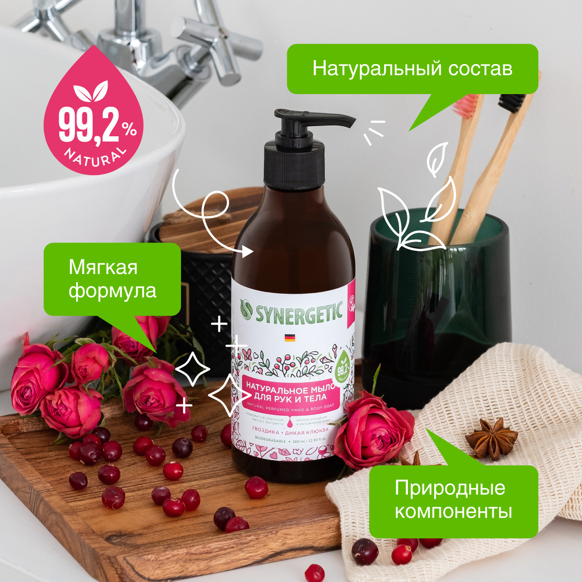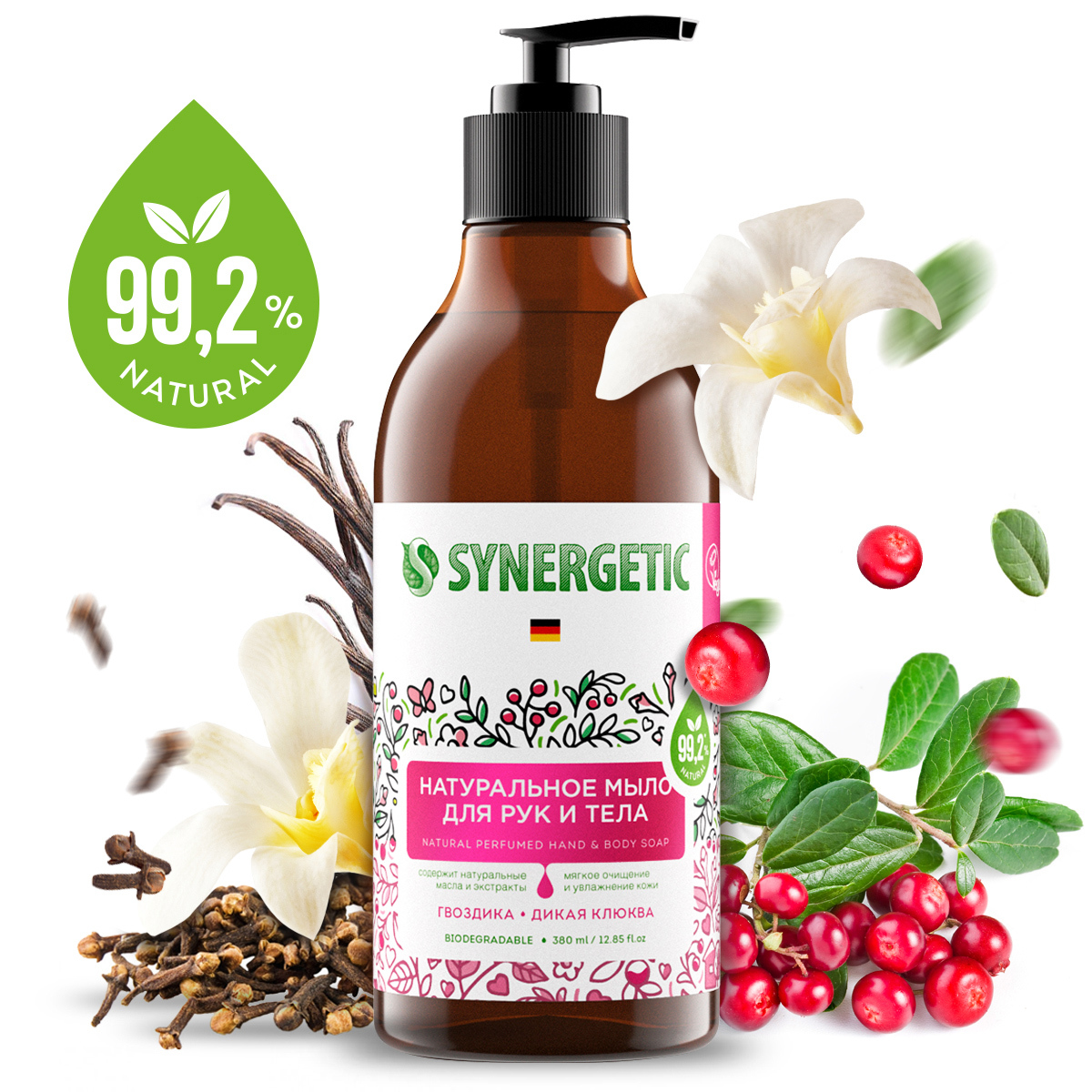 Мыло косметическое SYNERGETIC Гвоздика и дикая клюква, 380 мл