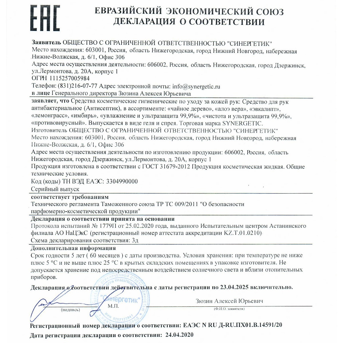 Средство для мытья посуды (яблоко) 1 л "Синергетик"