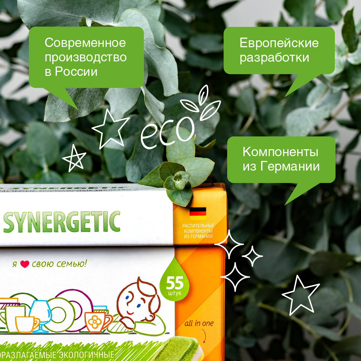 Бесфосфатные таблетки для посудомоечных машин SYNERGETIC, 55 шт. + 55 шт.