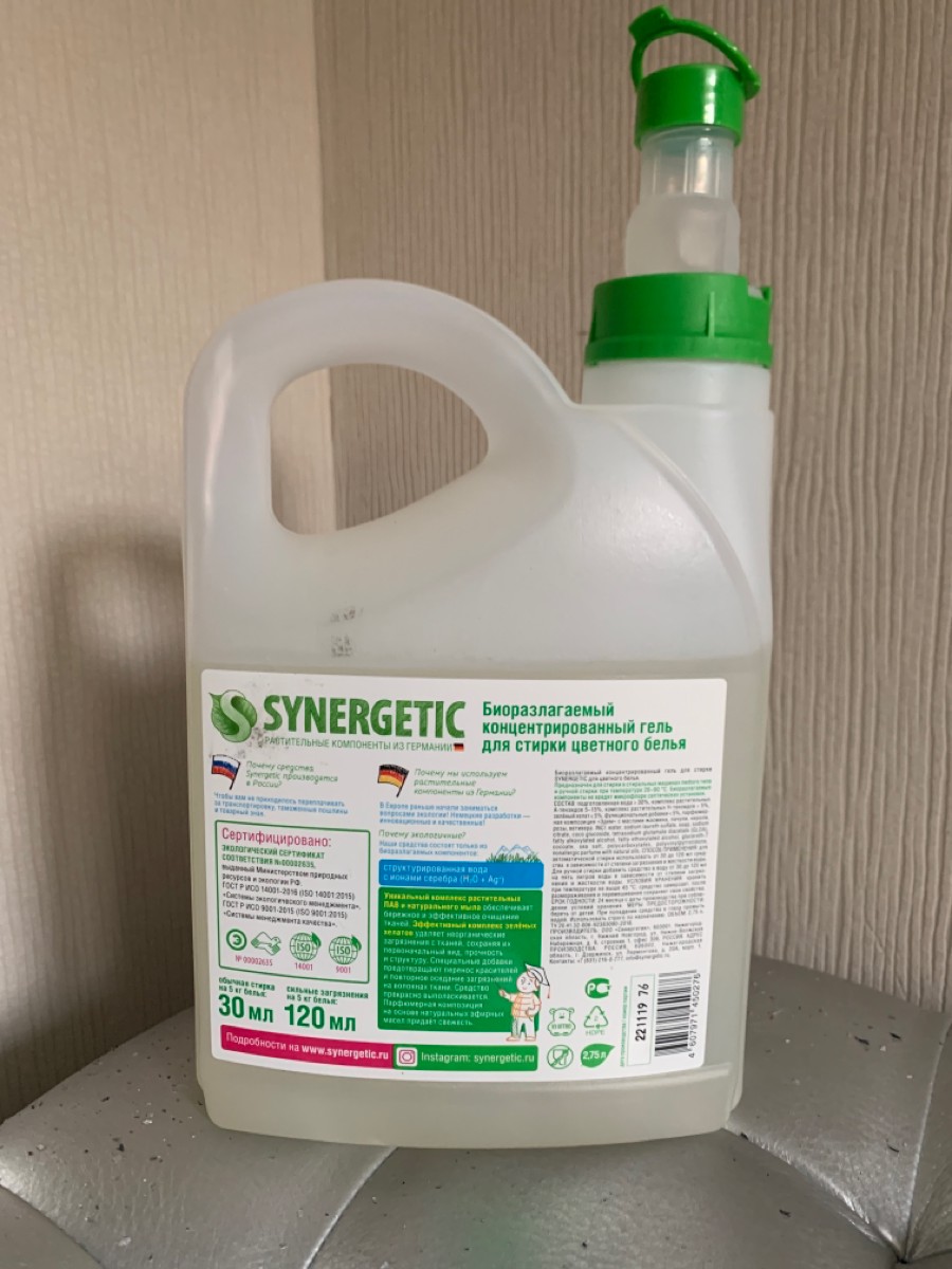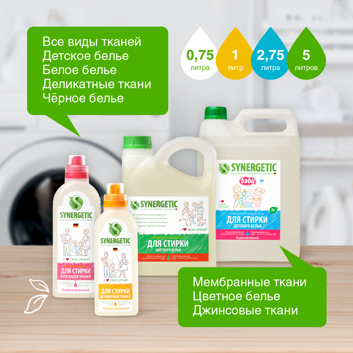 Гель для стирки 2в1 SYNERGETIC c пятновыводителем, концентрат, гипоаллергенный, 5л, 165 стирок