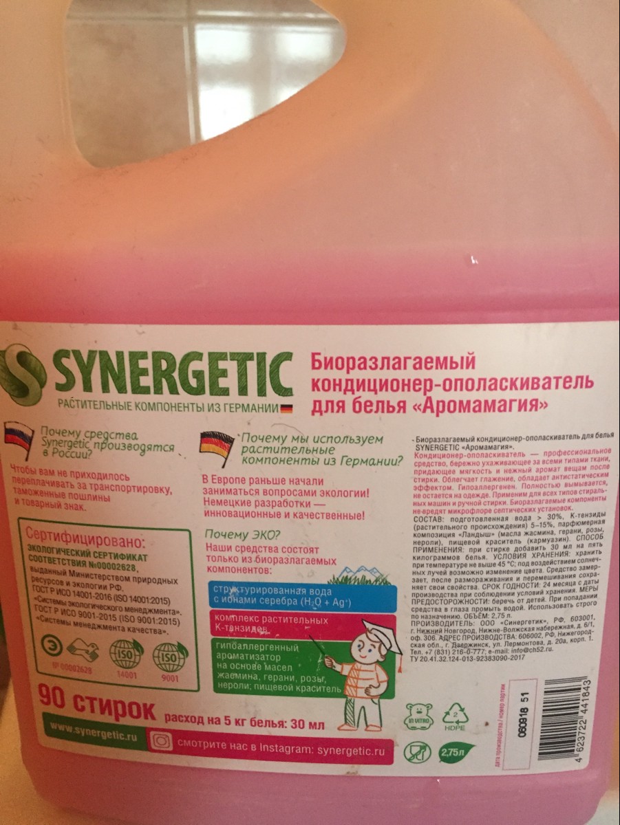 Кондиционер для белья SYNERGETIC Аромамагия, гипоаллергенный, 2,75 л, 90 стирок