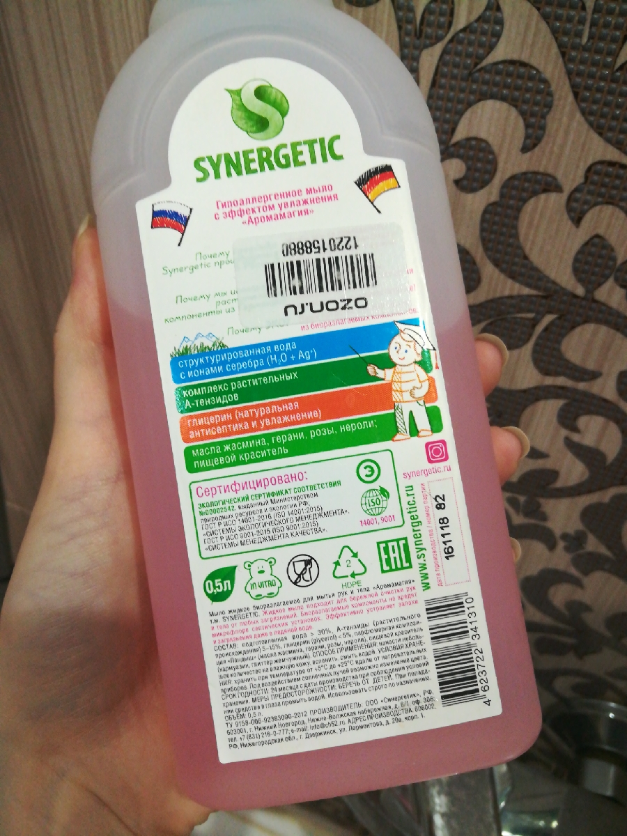 Жидкое мыло SYNERGETIC "Аромамагия" с эффектом увлажнения, гипоаллергенное, 0,5л