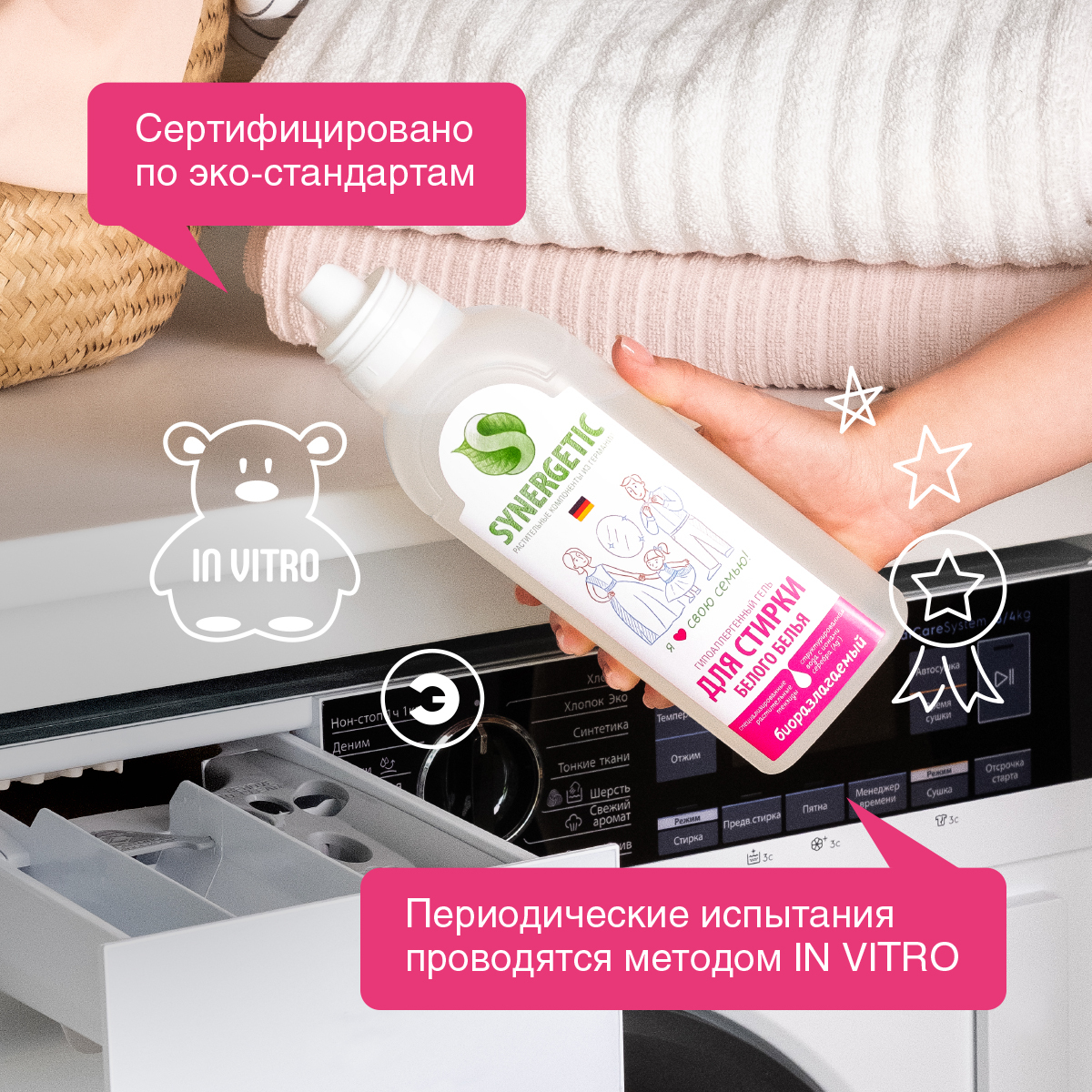 Гель для стирки белого белья SYNERGETIC, гипоаллергенный, 750 мл