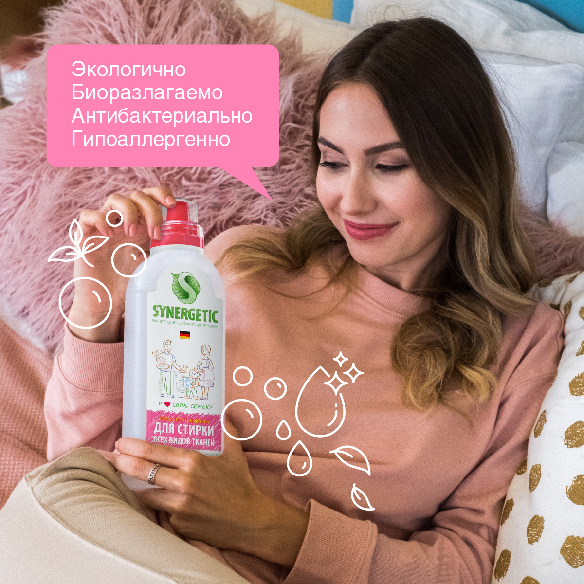 Гель для стирки всех видов тканей SYNERGETIC, гипоаллергенный, 750 мл