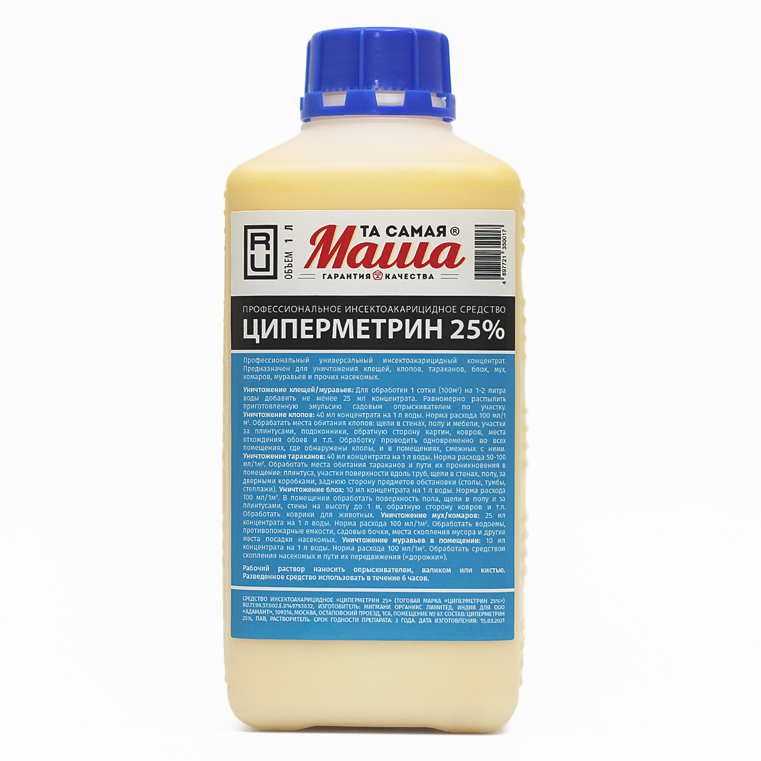 Циперметрин 25 средство от клещей, тараканов, муравьев, клопов, комаров, мух "Маша" 1 л