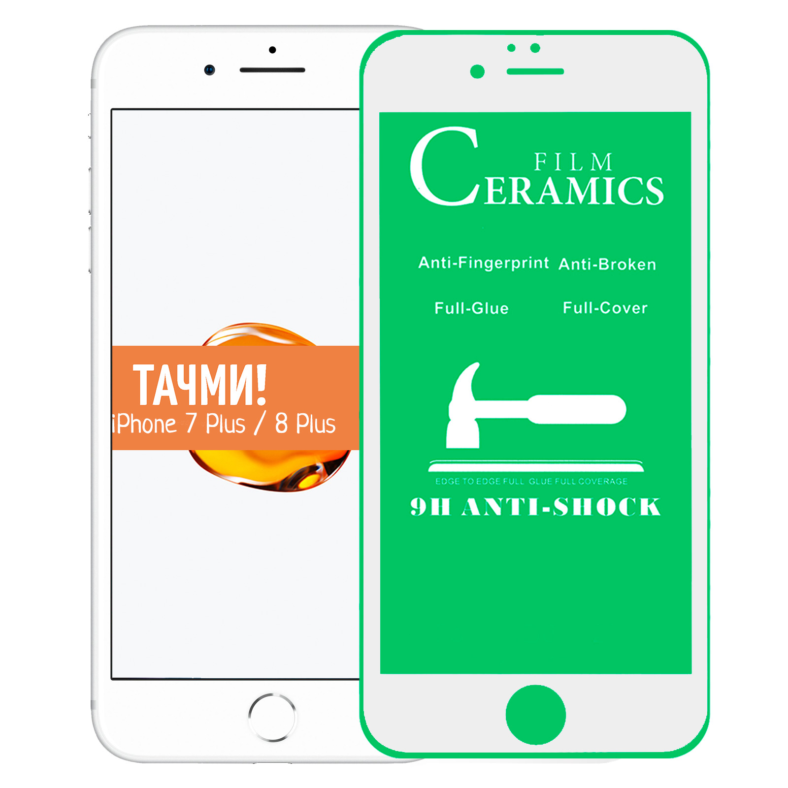 Защитная керамическая пленка для Apple iPhone 7 Plus / Apple iPhone 8 Plus на весь экран, белый