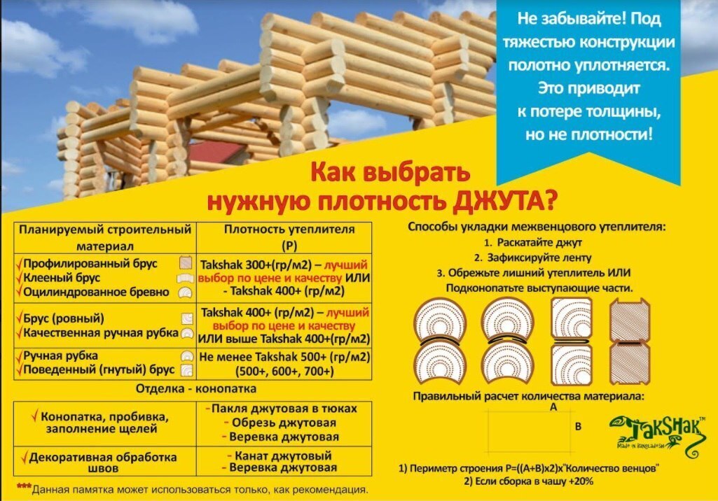 Утеплитель межвенцовый Джут 5-7 мм толщ/150мм шир/60 метров/300 плот/TAKSHAK