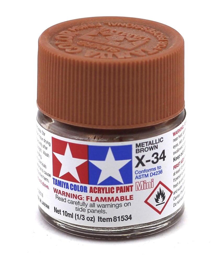 Tamiya X-34 Metal Brown, Коричневый металлик, Краска акриловая, 10мл