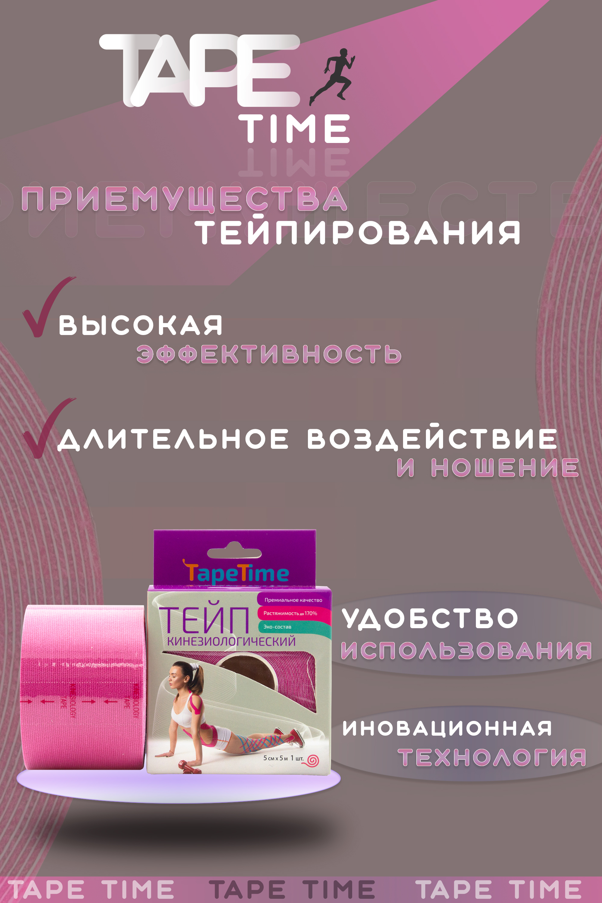 Кинезиотейп TAPETIME ТЕЙП ДЛЯ ЛИЦА И ТЕЛА 5см Х 5 м, розовый