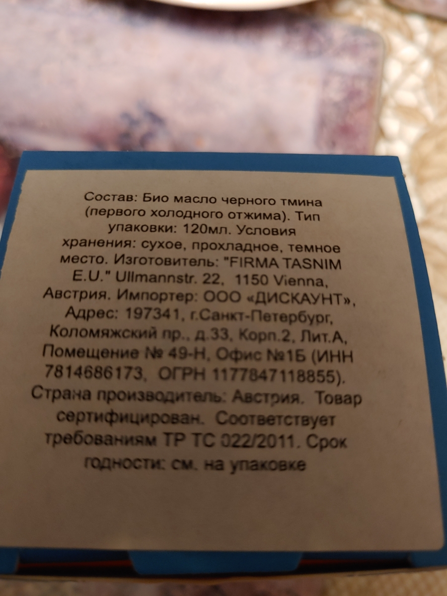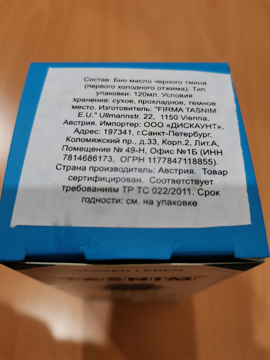 Био масло черного тмина Tasnim холодного отжима нефильтрованное 100% натуральное в стекле из Австрии 120 мл