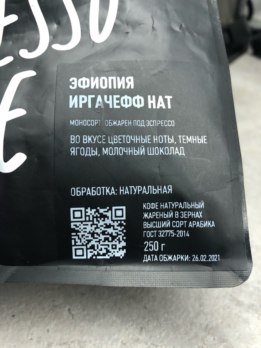 Кофе в зернах ЭФИОПИЯ ИРГАЧЕФФ НАТ 250 гр /свежая обжарка / roasted in Izhevsk/.