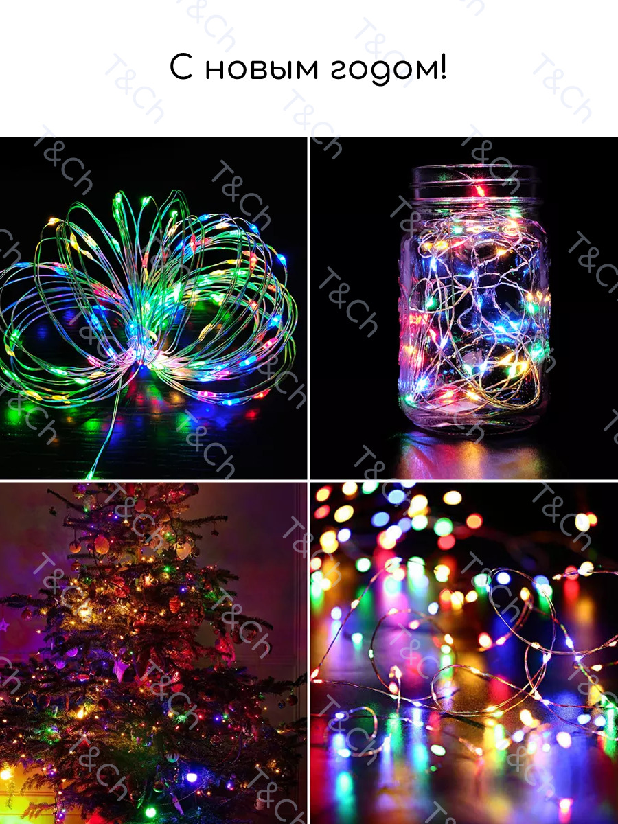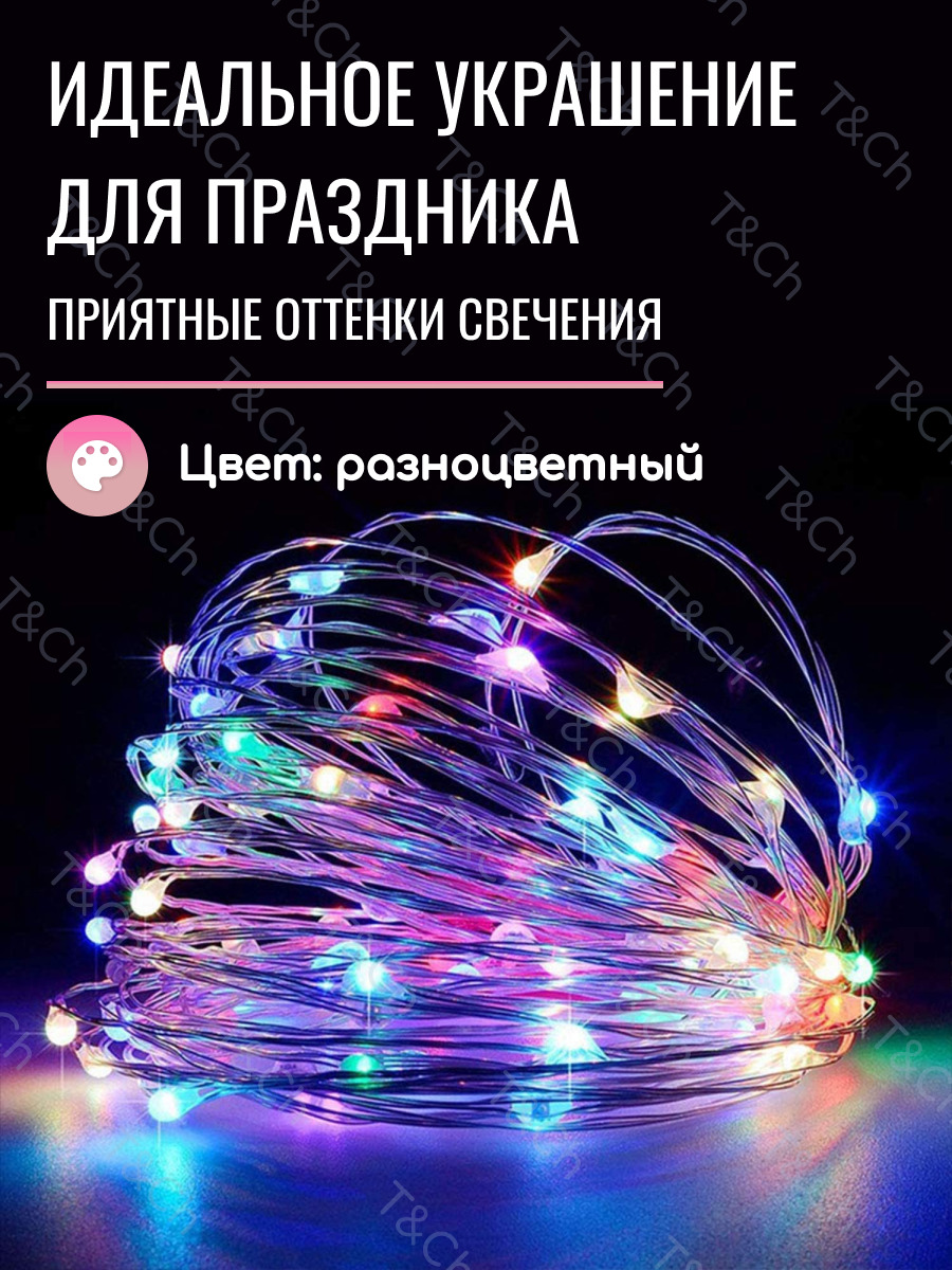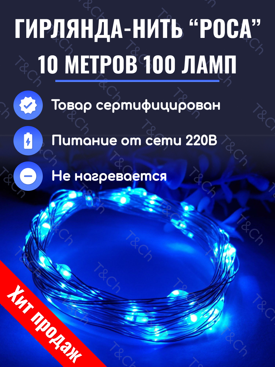 Электрогирлянда интерьерная Нить T&Ch Светодиодная 100 ламп, 10 м, питание От сети 220В, 1 шт