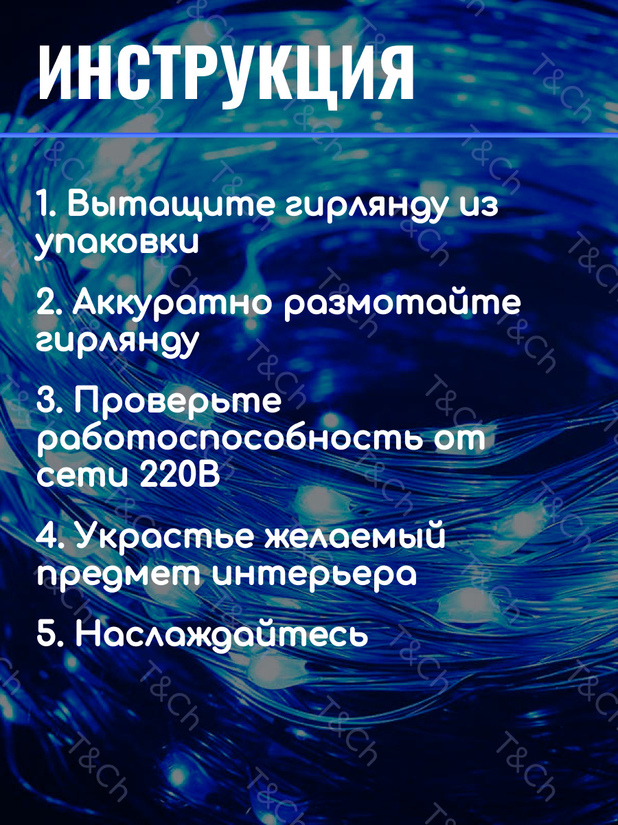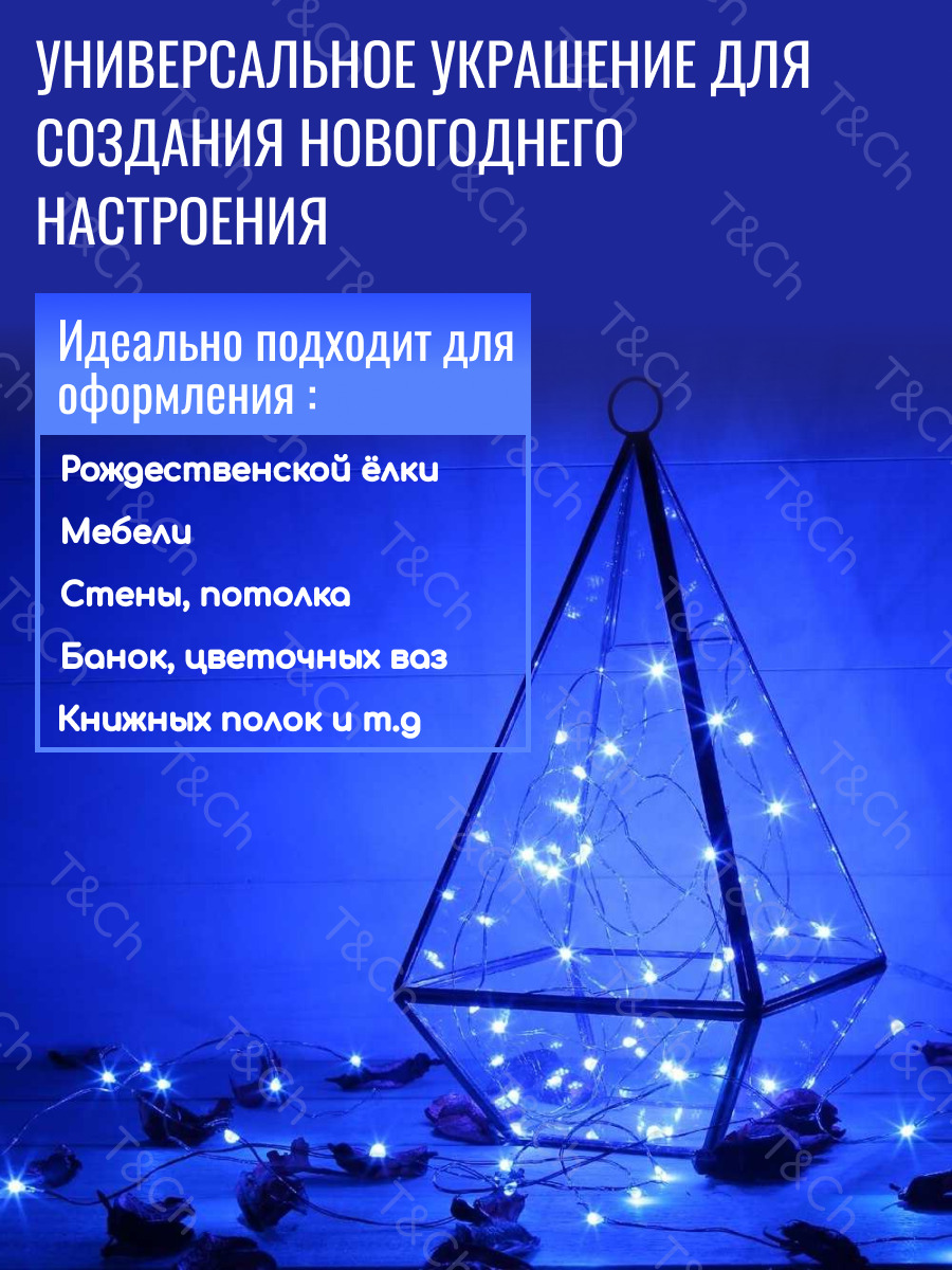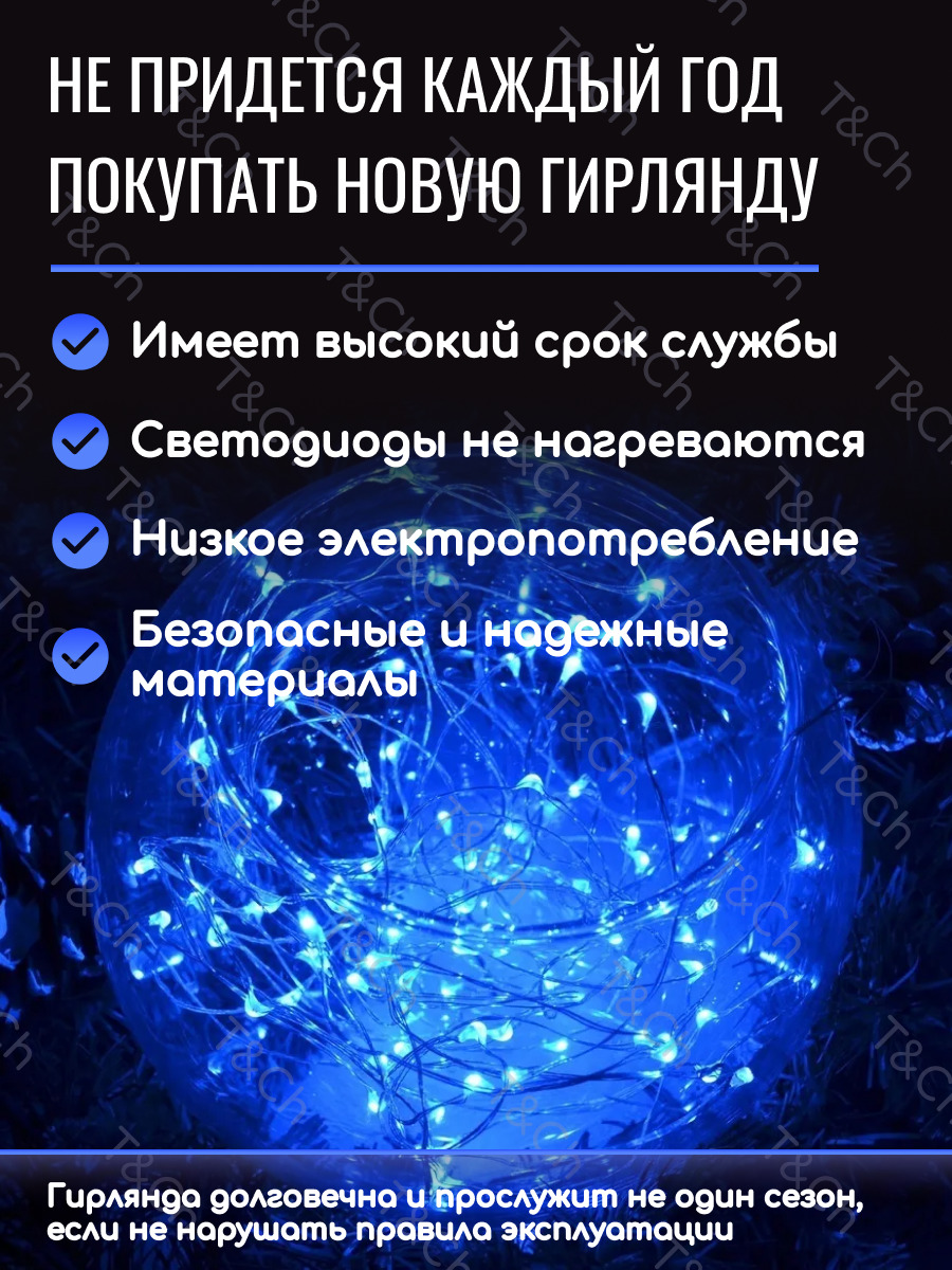 Электрогирлянда интерьерная Нить T&Ch Светодиодная 100 ламп, 10 м, питание От сети 220В, 1 шт