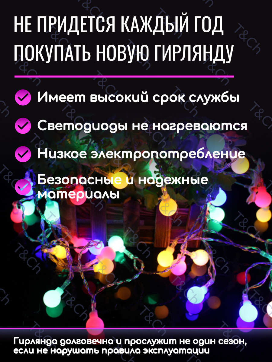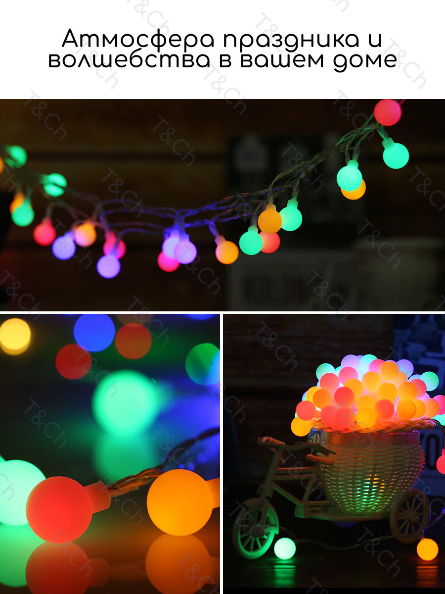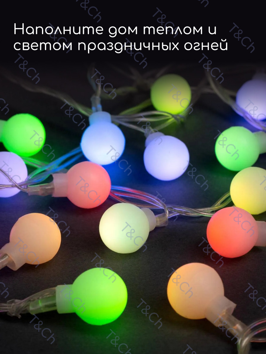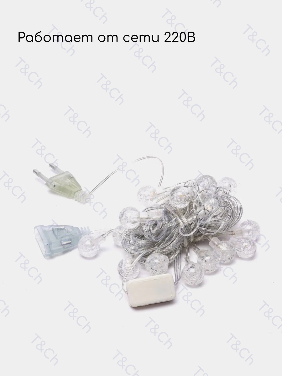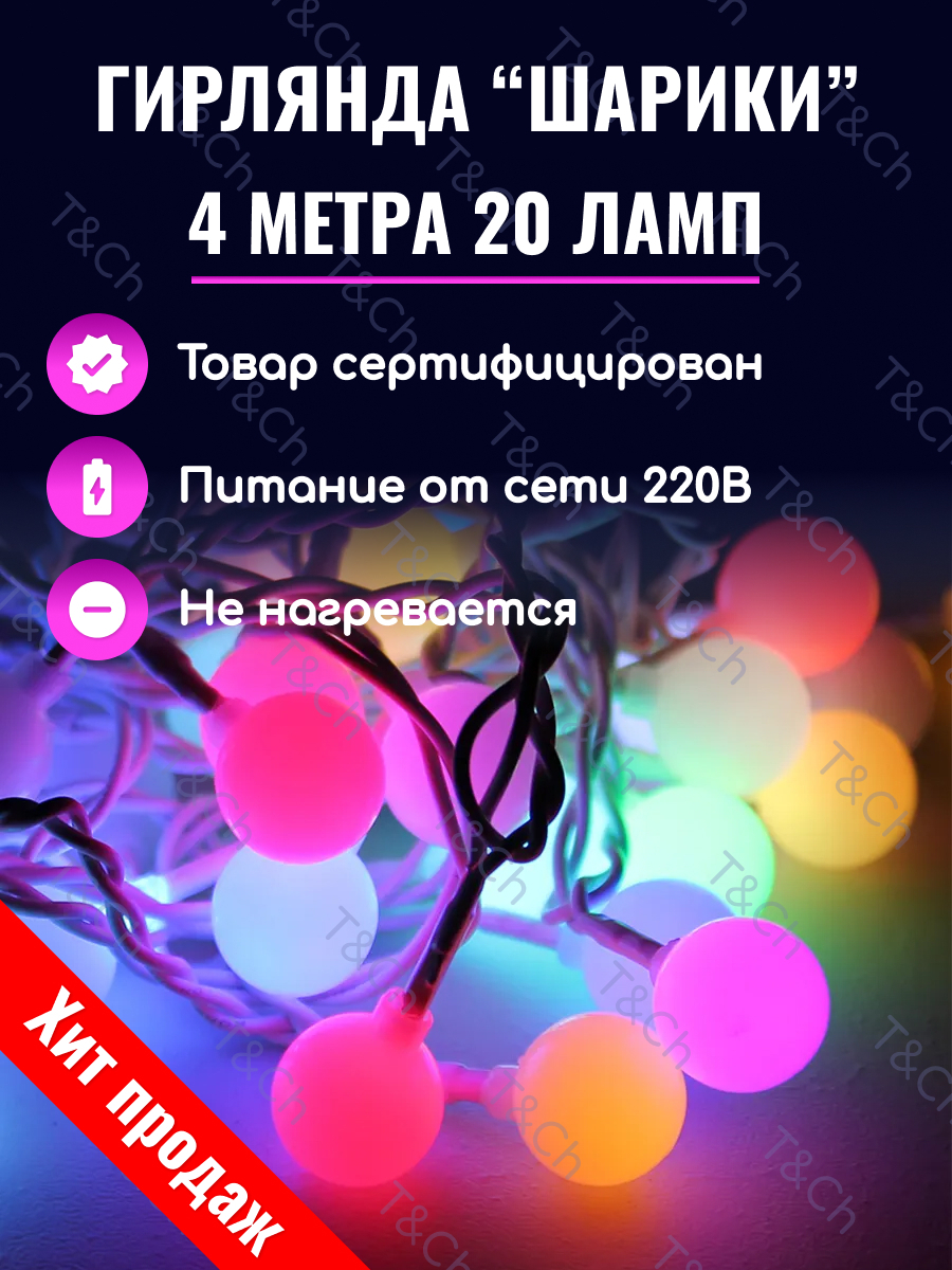 Электрогирлянда интерьерная Шарики T&Ch Светодиодная 20 ламп, 4 м, питание От сети 220В