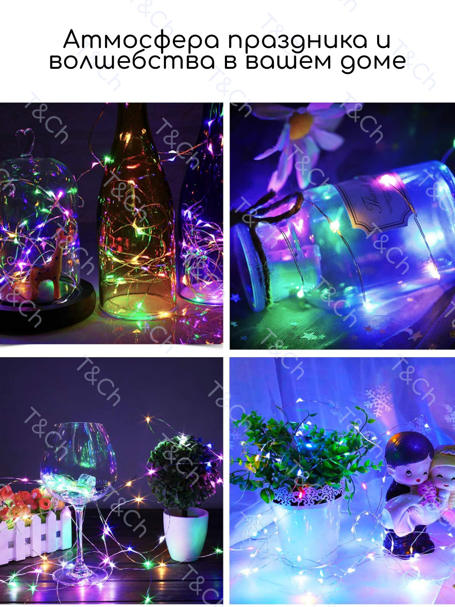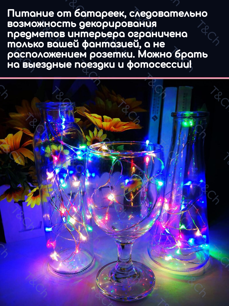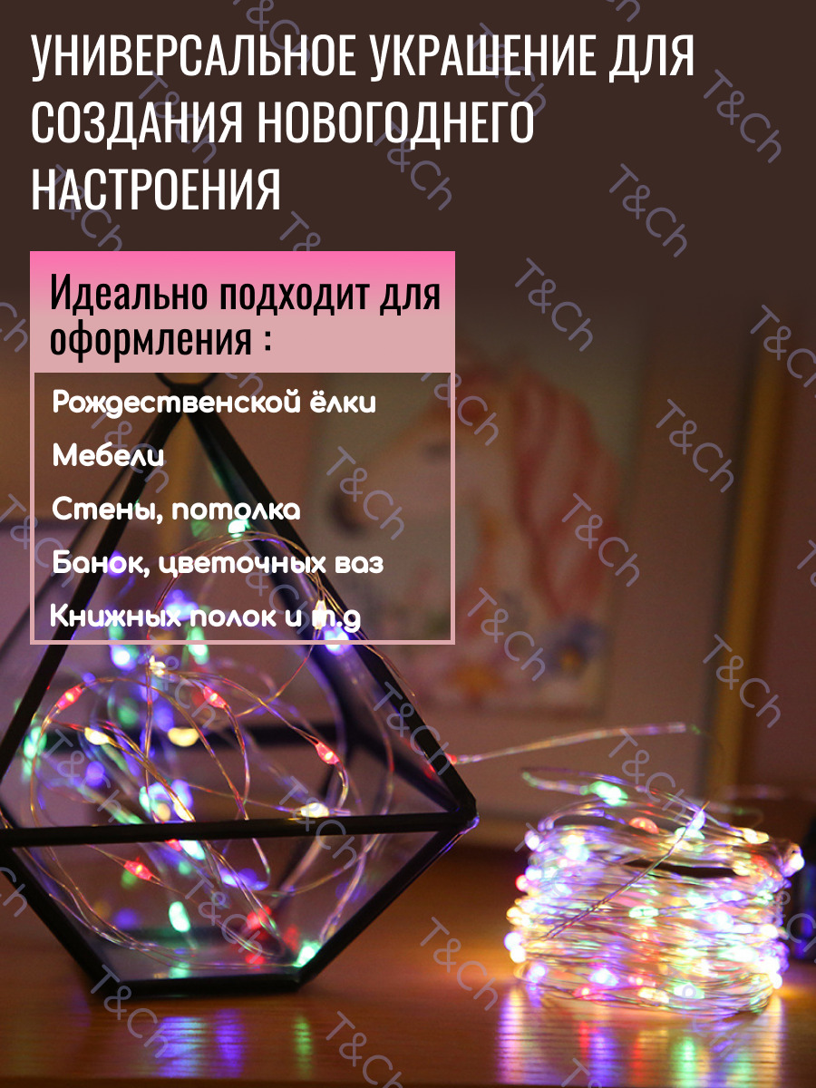 Электрогирлянда интерьерная Нить T&Ch Светодиодная 50 ламп, 5 м, питание 2 CR2032