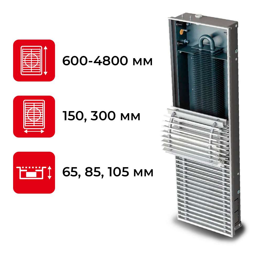Водяной конвектор Techno Power KVZ 300 - 105 - 1500 мм (внутрипольный / встраиваемый)
