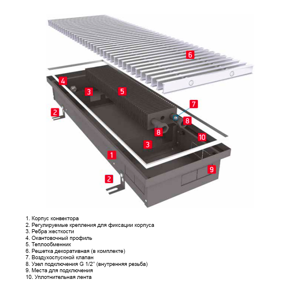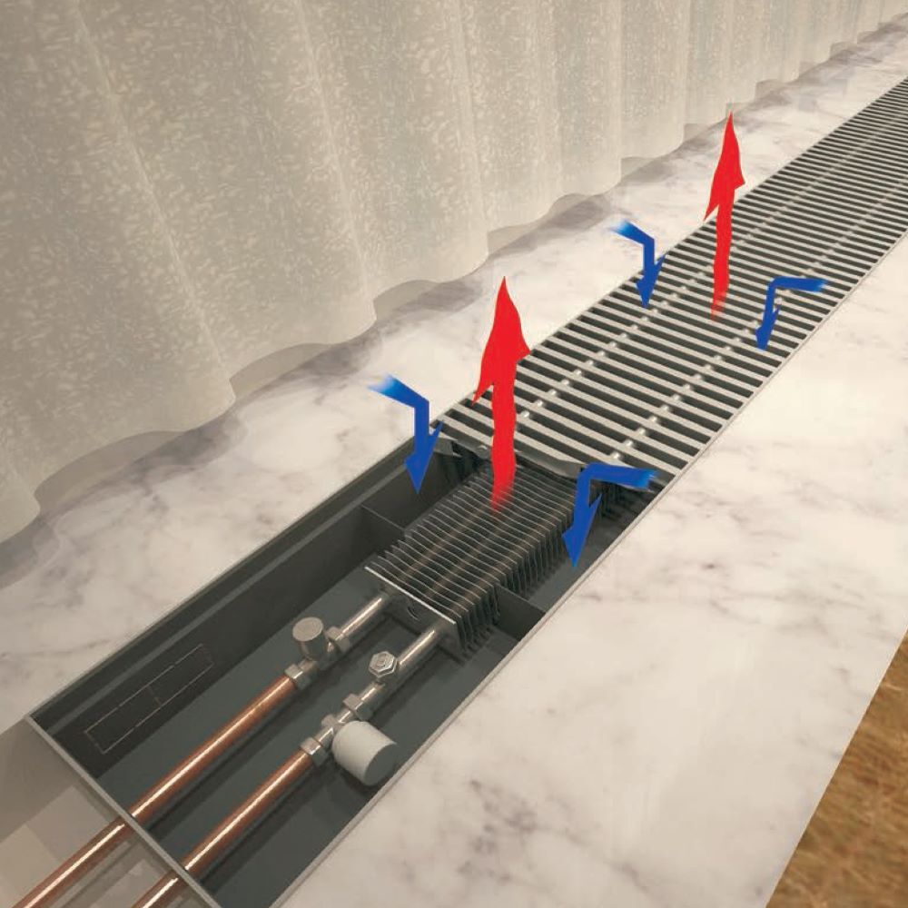 Водяной конвектор с решеткой Techno Power KVZ 300 - 85 - 1000 мм ( встраиваемый / внутрипольный )