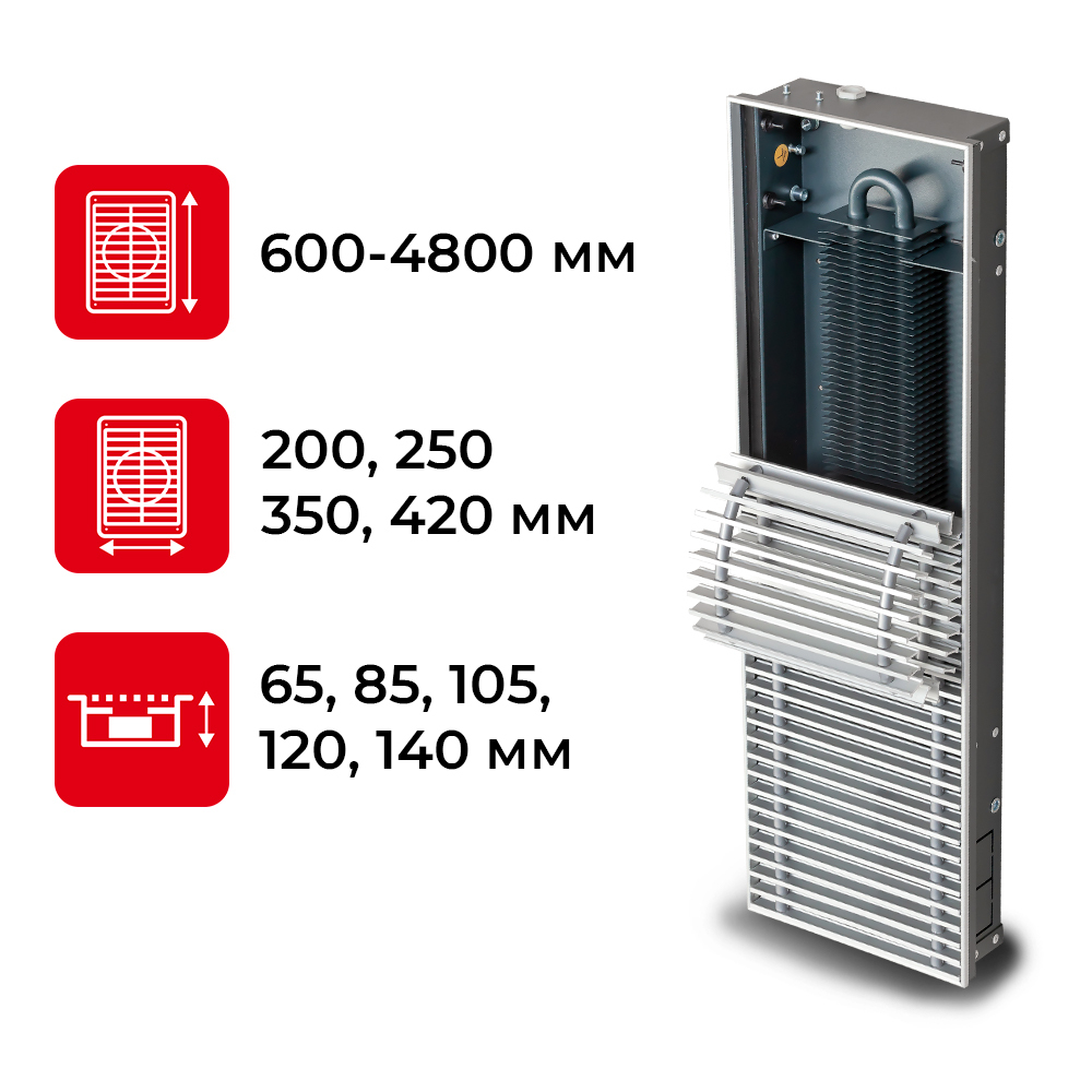 Водяной конвектор Techno Vent KVZV 250 - 85 - 2300 мм (внутрипольный / встраиваемый)