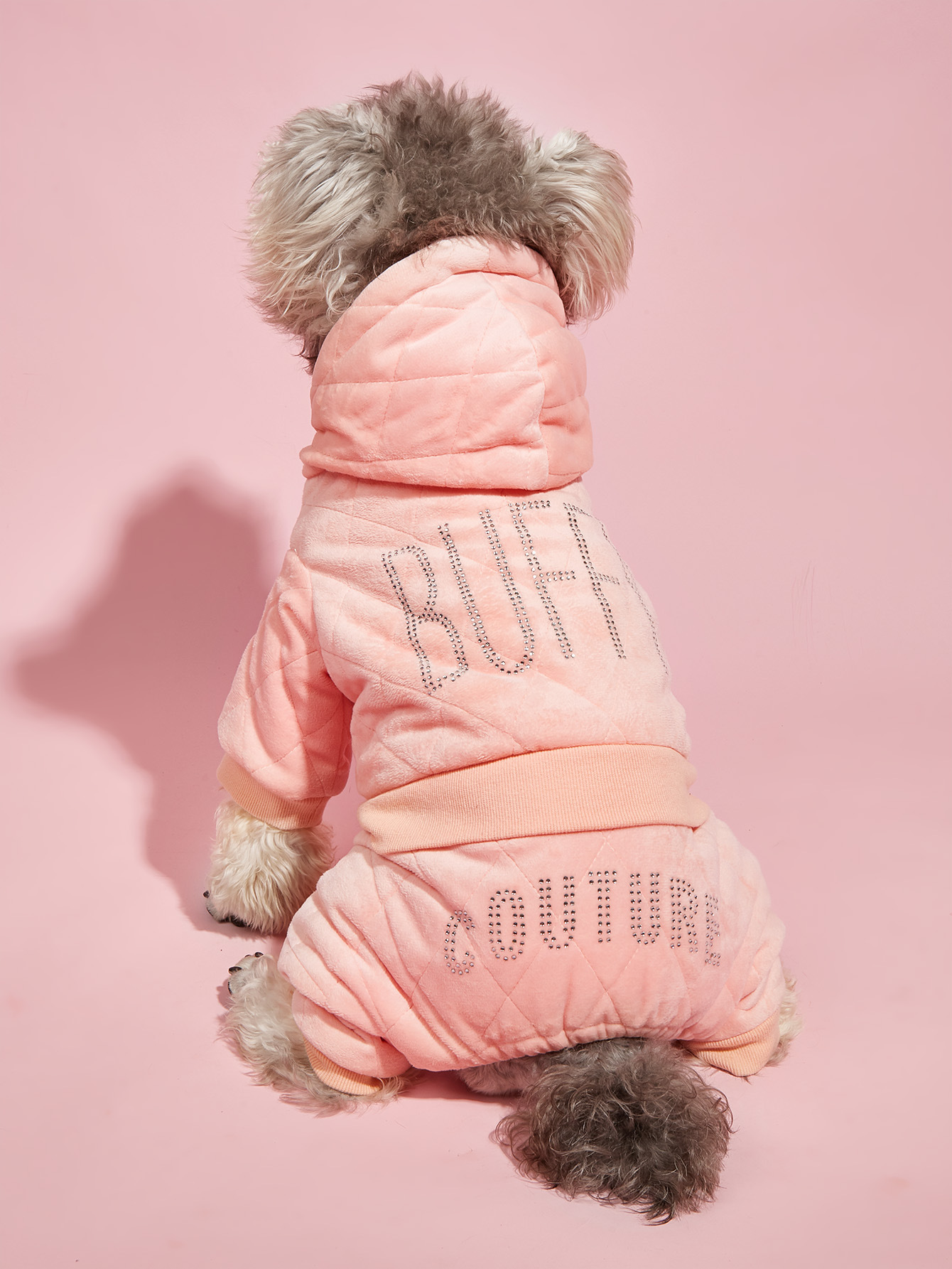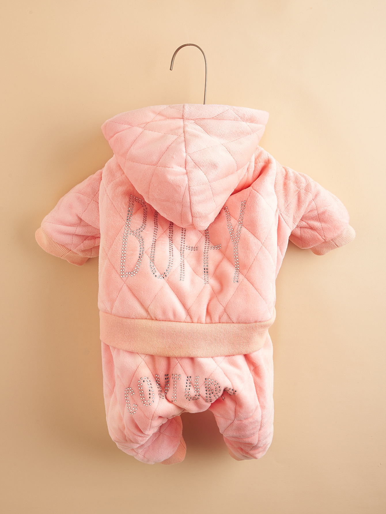 Комбинезон утепленный для мелких пород собак велюровый. Teddy dog. Цвет розовый. Размер S