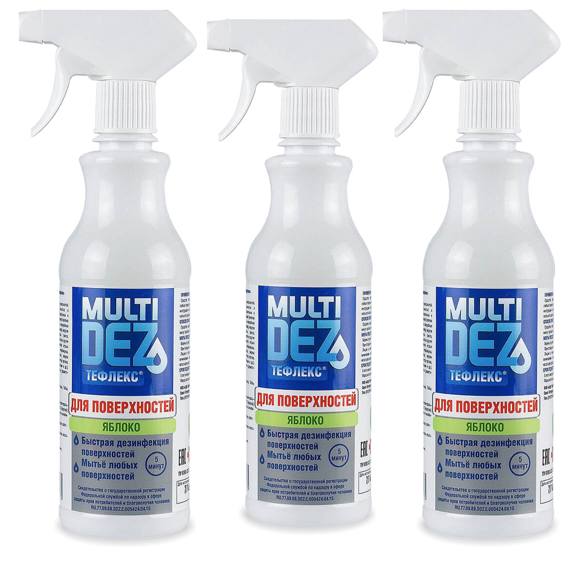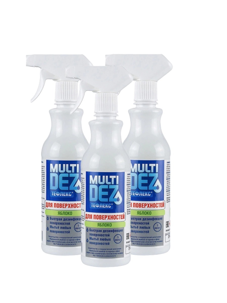Дезинфицирующее средство для поверхностей Тефлекс MultiDez Яблоко, 1000 мл, спрей, 3шт