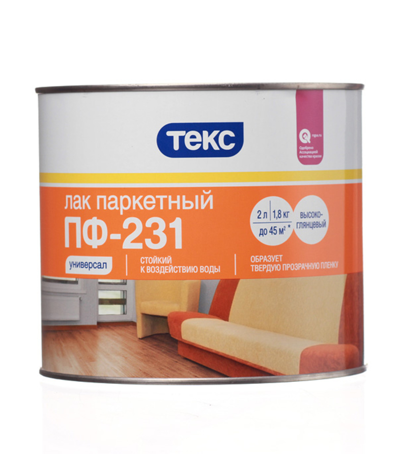 Лак алкидный паркетный Текс ПФ-231 бесцветный 1,8 кг глянцевый