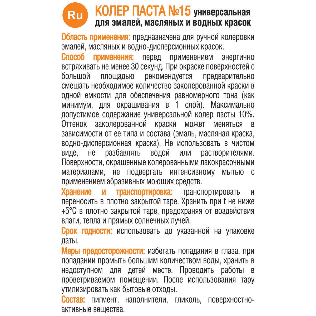 Колер-краска Текс Оранжевый 100 мл
