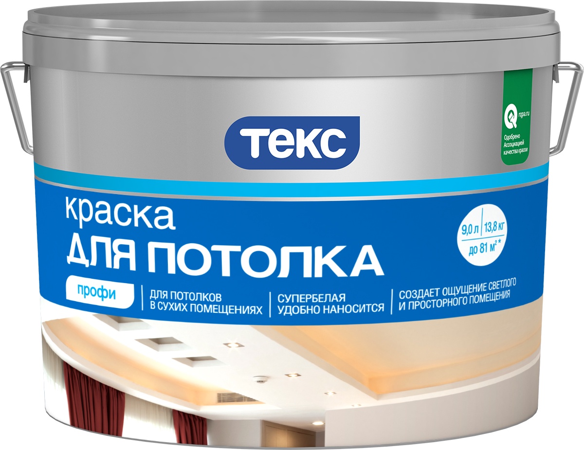 Краска Текс Профи основа D, Акриловая, Матовое покрытие, 9 л, белый