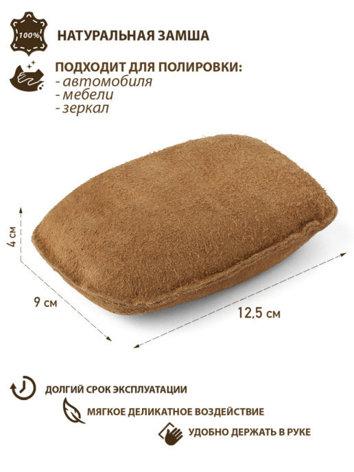 Губка из натуральной замши для полировки автомобиля, 12,5х9х4 см