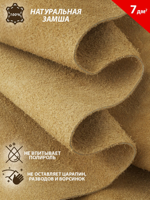 Салфетка из натуральной замши для полировки автомобиля, 10 кв.дм