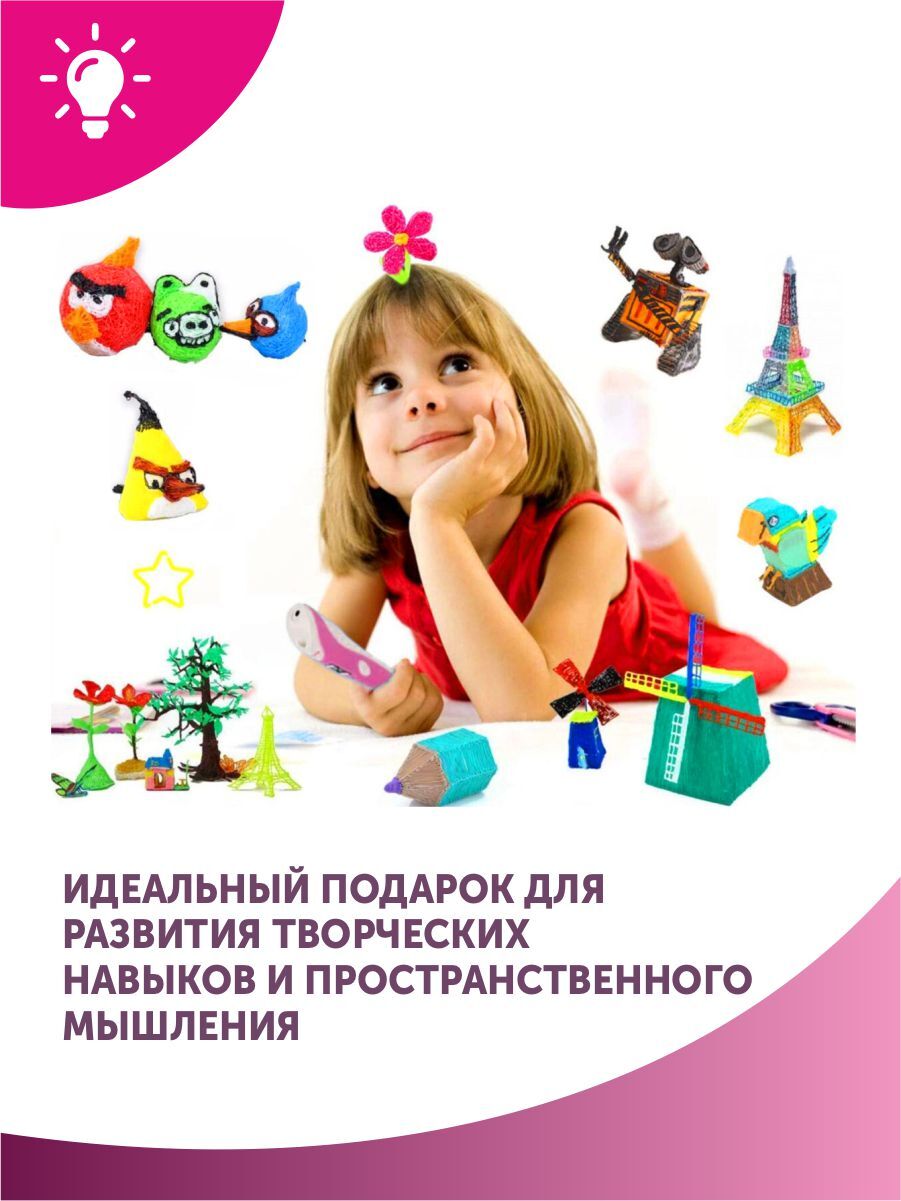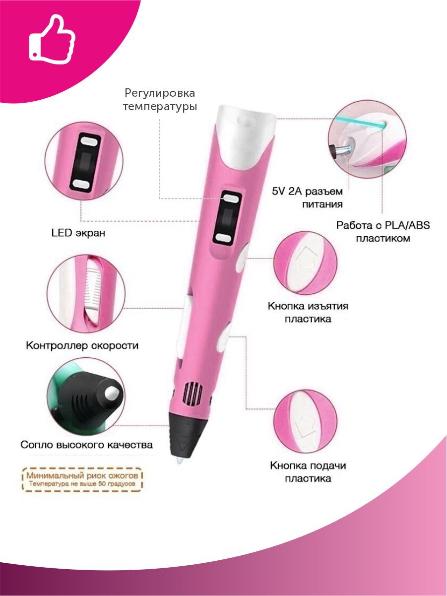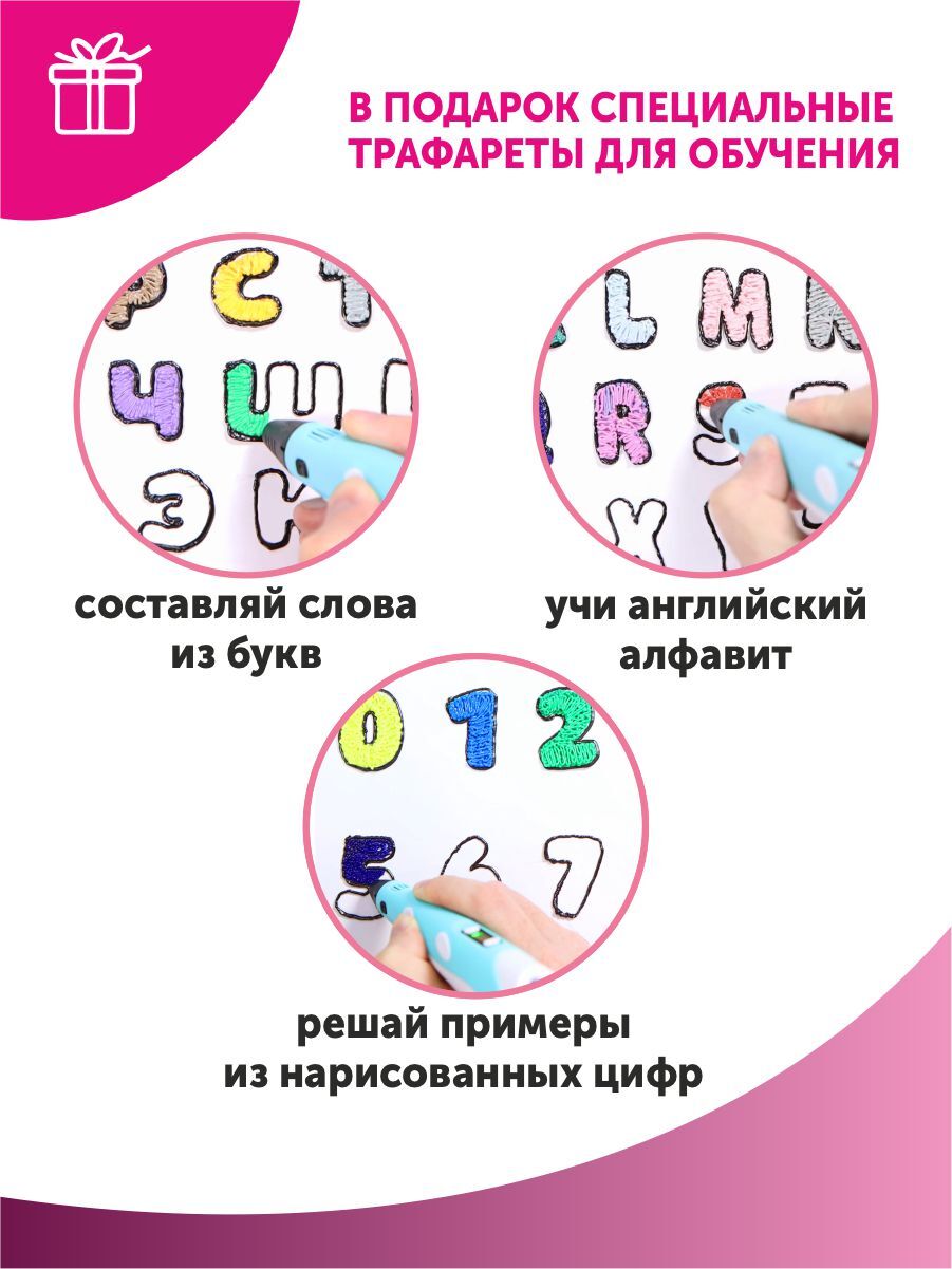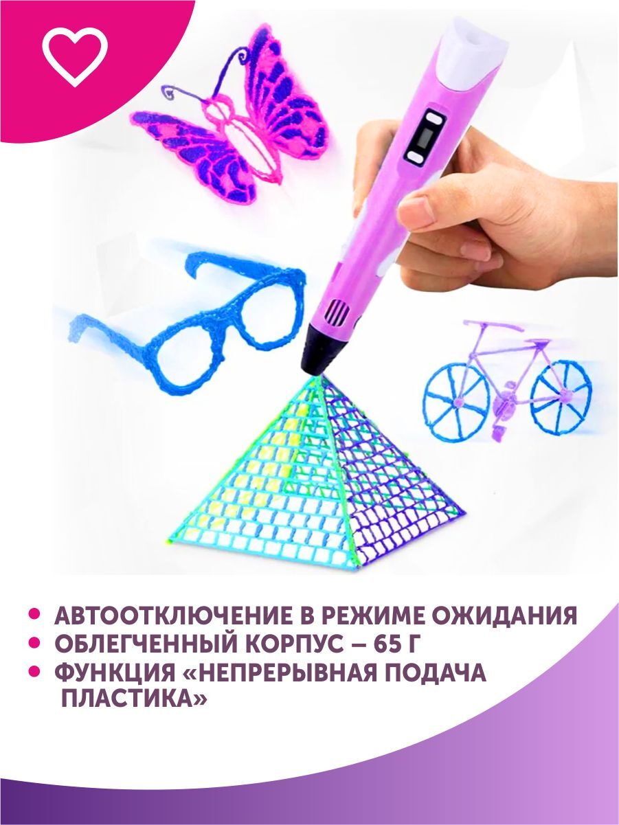 Тёмка 3D ручка и 110м. пластика и Набор трафаретов в комплекте в подарок, набор для детей, розовый