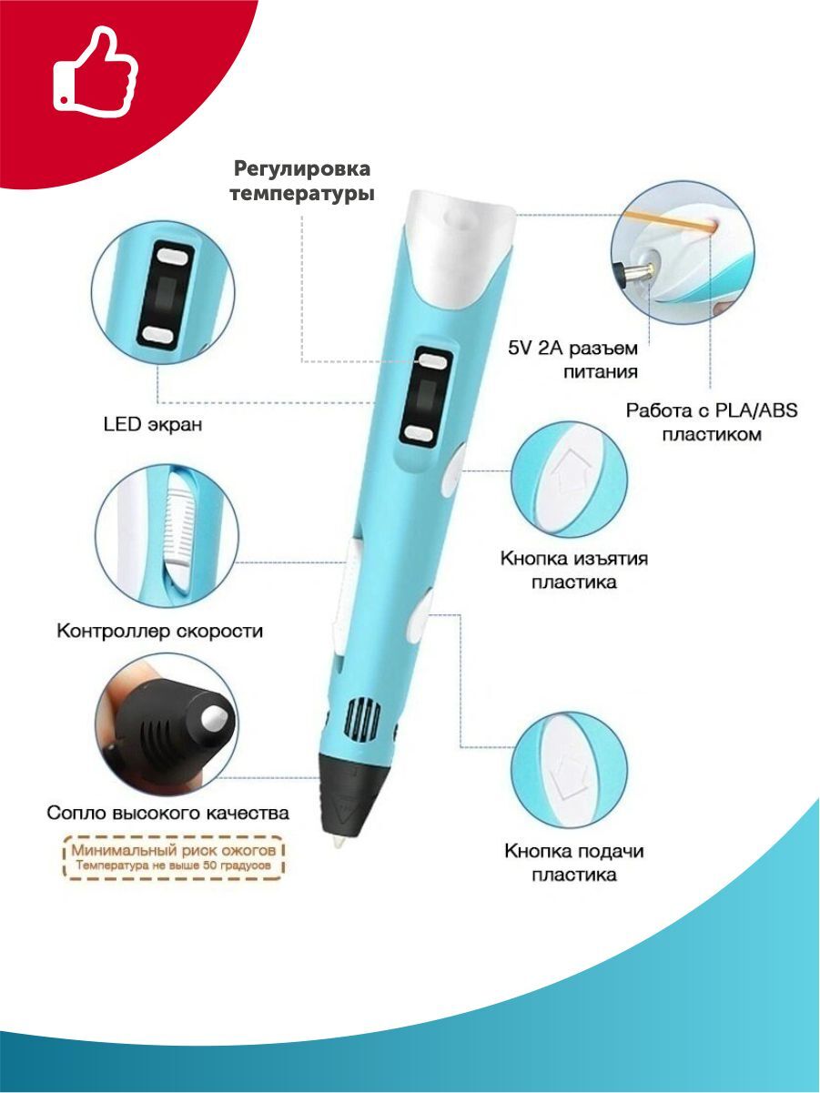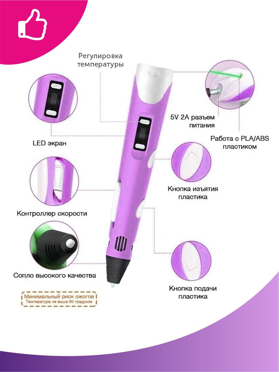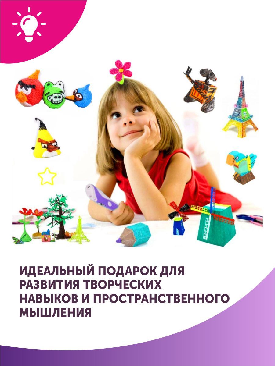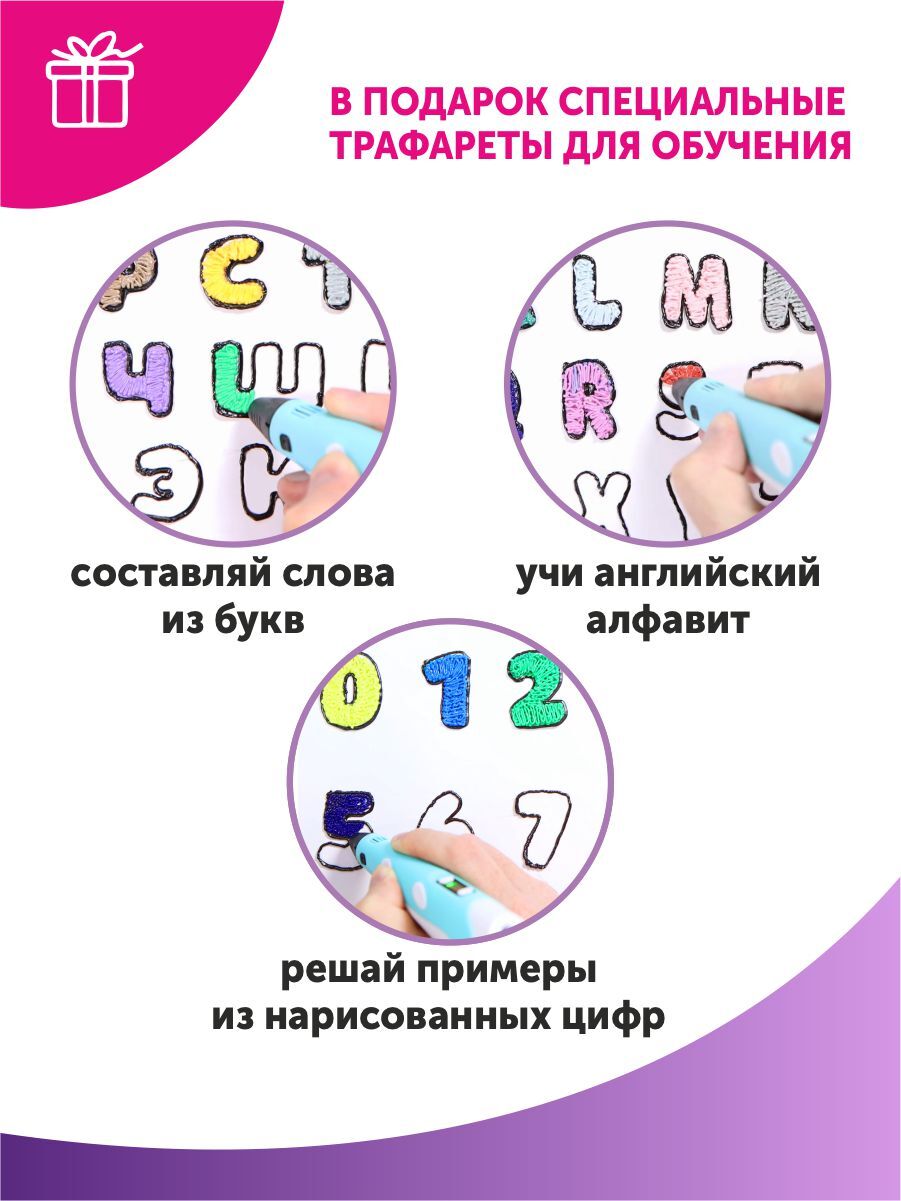 Тёмка 3D ручка и 110м. пластика и Набор трафаретов в комплекте в подарок, набор для детей, розовый