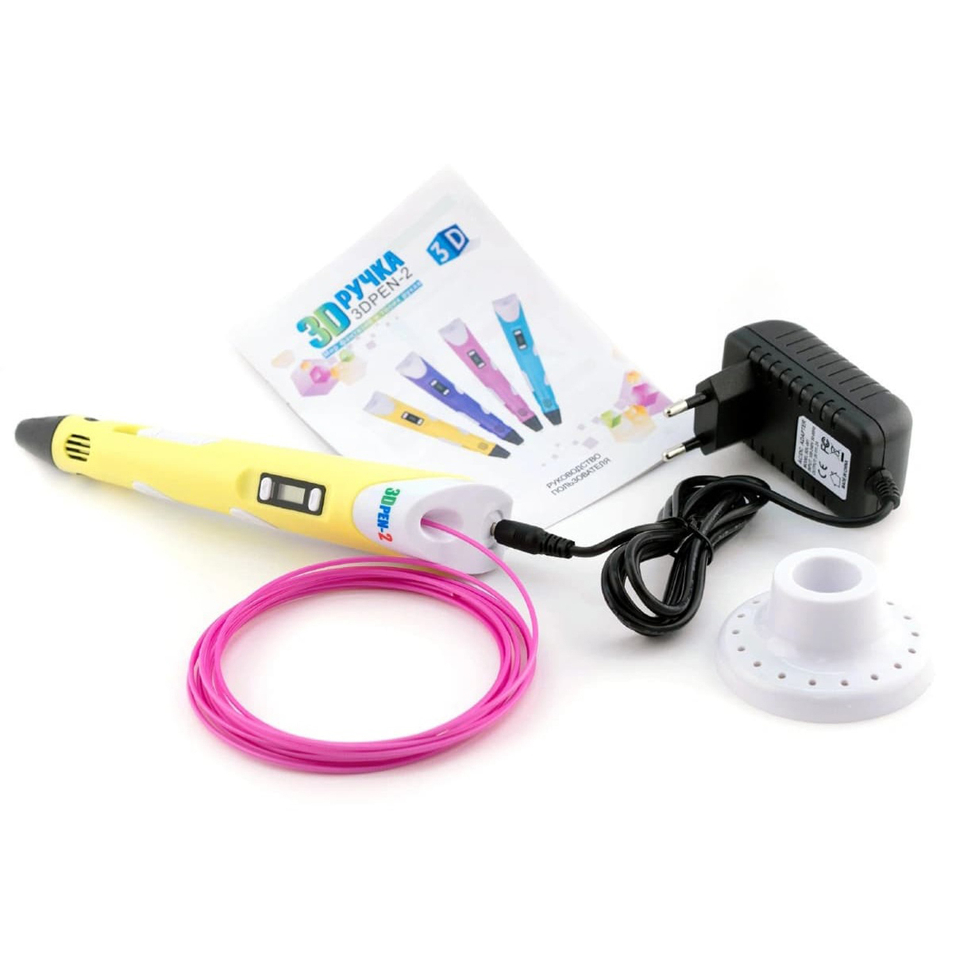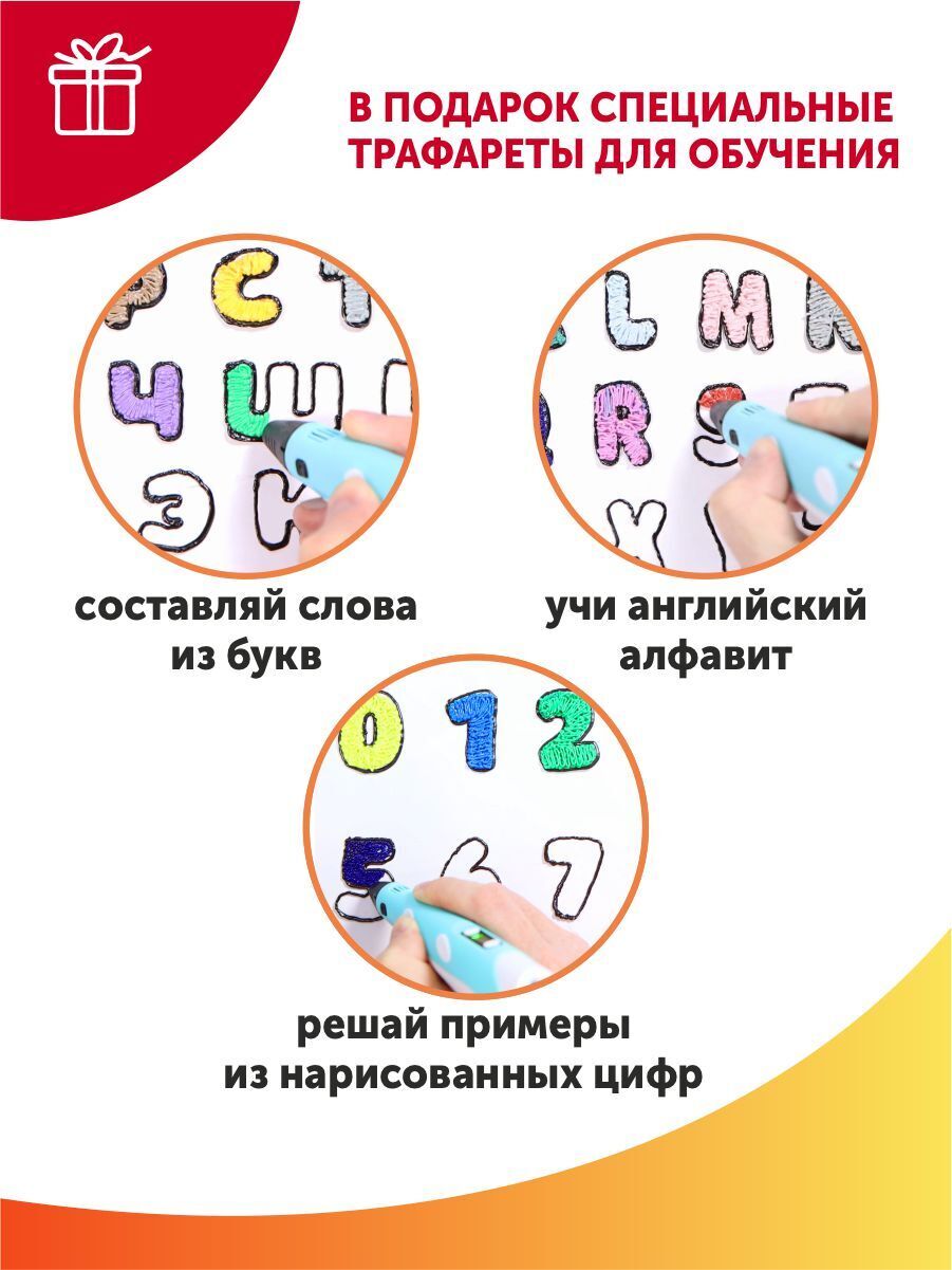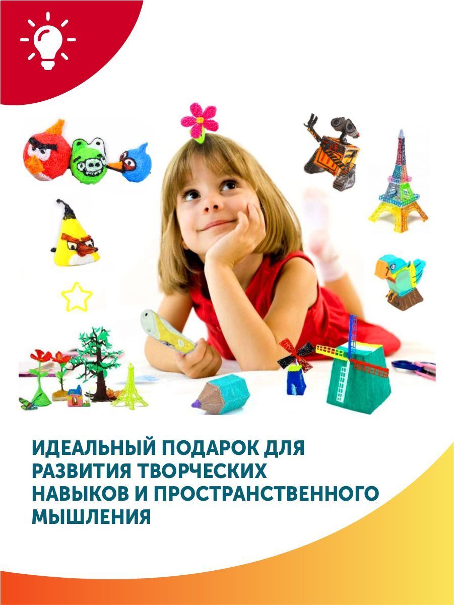 Тёмка+3D ручка и 110м PLA пластика и Набор трафаретов в комплекте, набор для детей, жёлтый