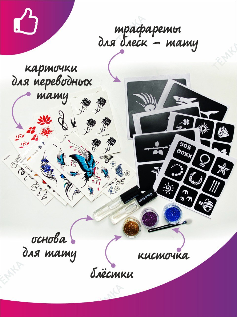 Тёмка Набор переводных татуировок для детей Временные татуировки для девочки Набор тату для девочки
