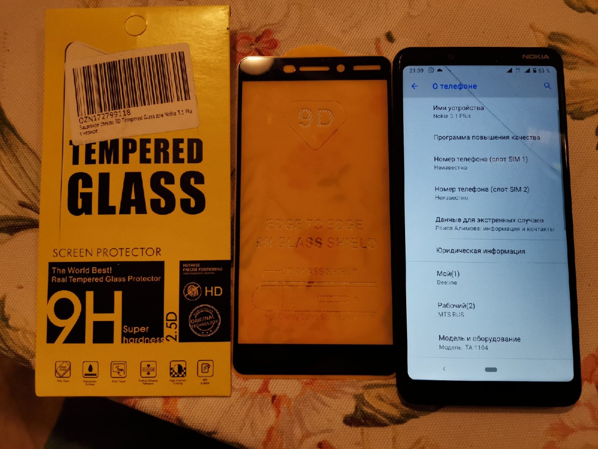 Защитное стекло 5D Tempered Glass для Nokia 3.1 Plus черное
